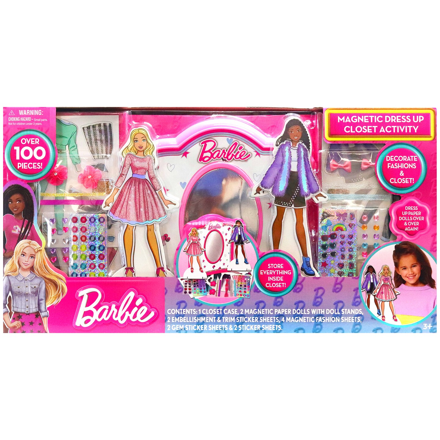 Barbie: Magnetic Dress Up Closet Activity - Fashion Design Playset, Mix & Match Accessories, Decorate & Display, Pink Closet Storage Case, Kids 3+