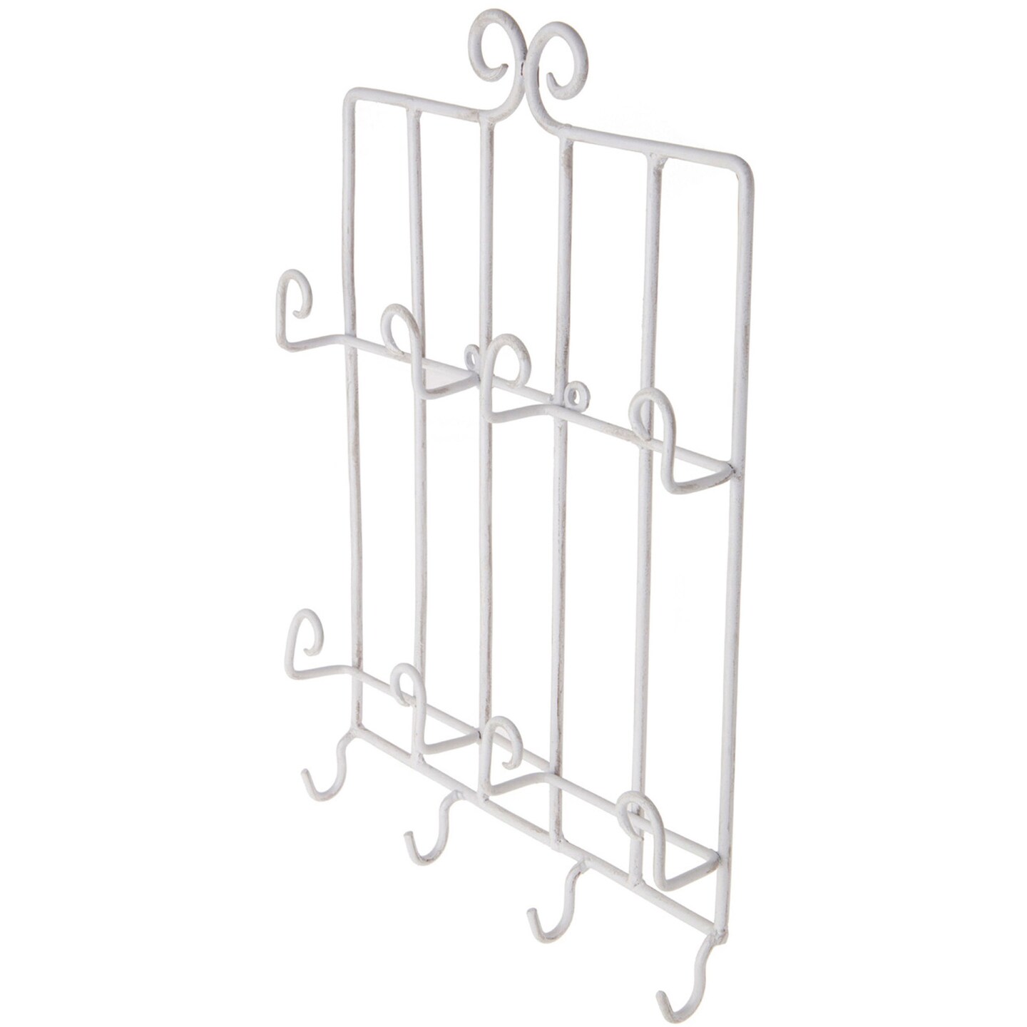 Bard's White Wrought Iron Wall Mounted 4 Cup and 4 Saucer Display Hanger, 15.75" H x 11.5" W x 2" D (For 6" Saucers)