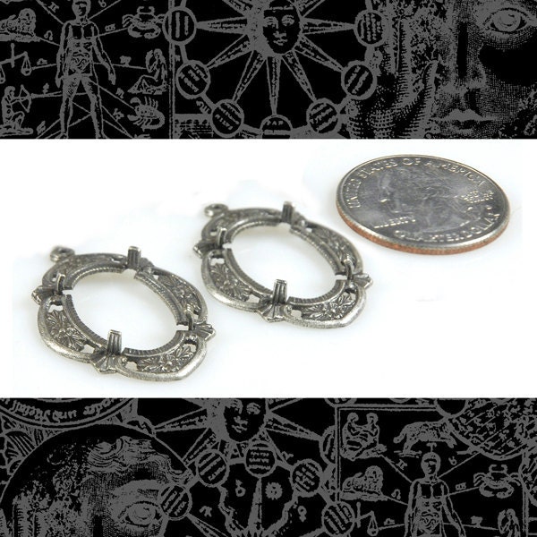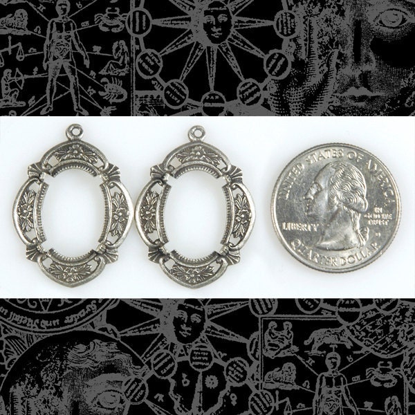Baroque Antiqued Silver Plated Brass Cameo Frames for 13mm x 18mm - Set of Two - S-F10