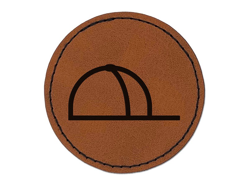 Baseball Cap Hat Side View Round Iron-On Engraved Faux Leather Patch Applique - 2.5"