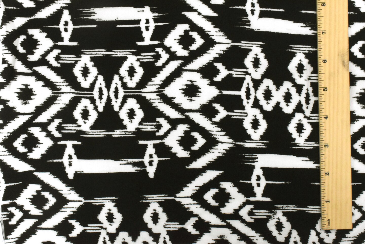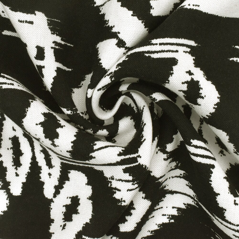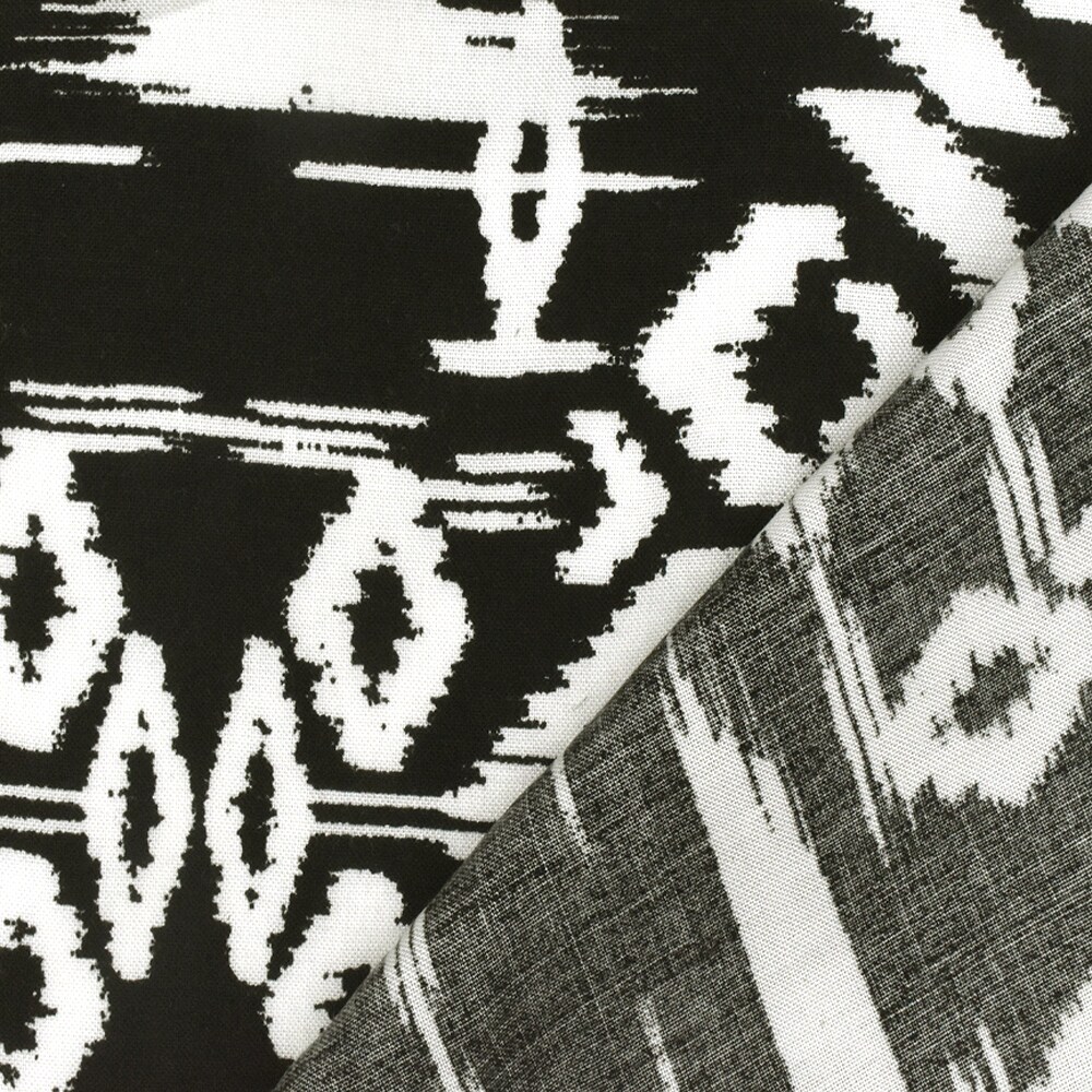 Basic Black-White Ikat Aztec Printed Rayon Challis Woven Fabric By the Yard