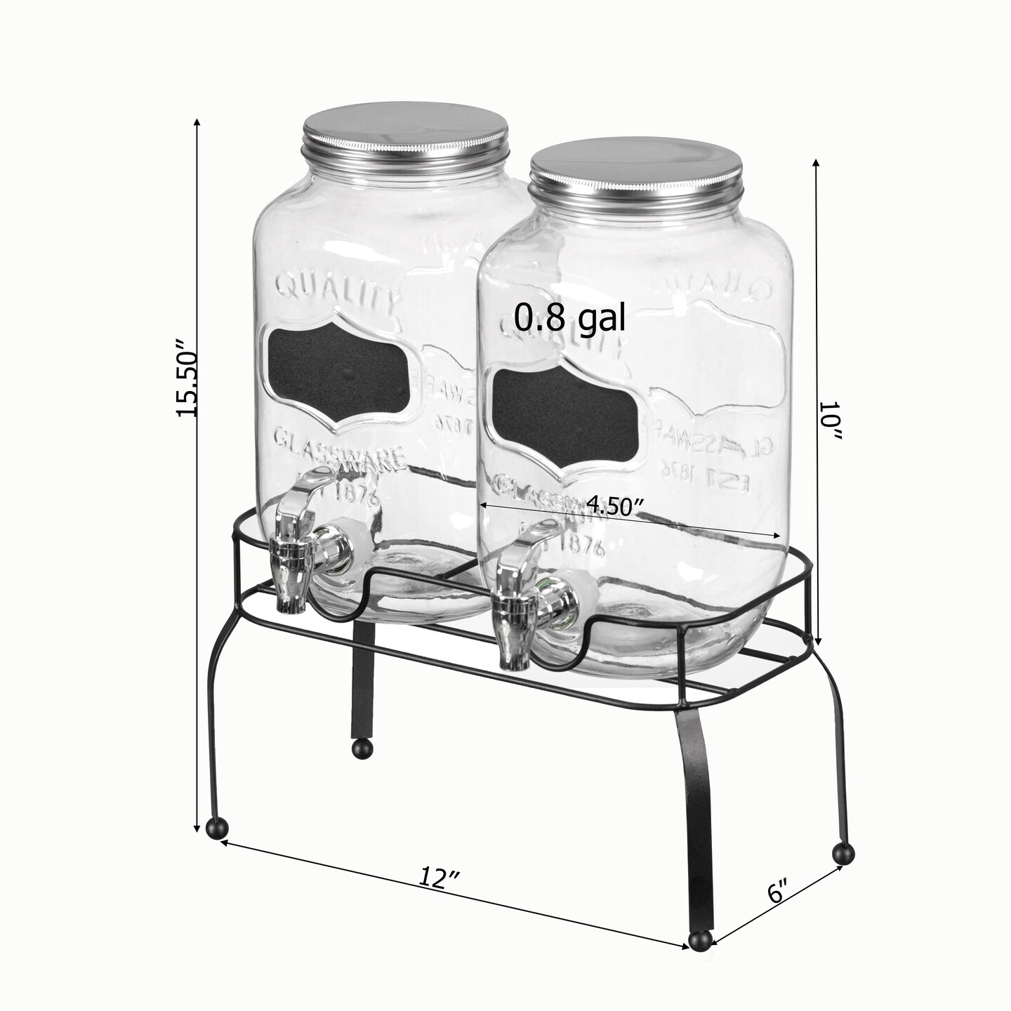Basicwise 2-Pcs Glass Drink Dispenser Set - Ideal for Serving Beverages, Water, Lemonade and Juice at Picnics, Camping Trips, Wedding and Parties