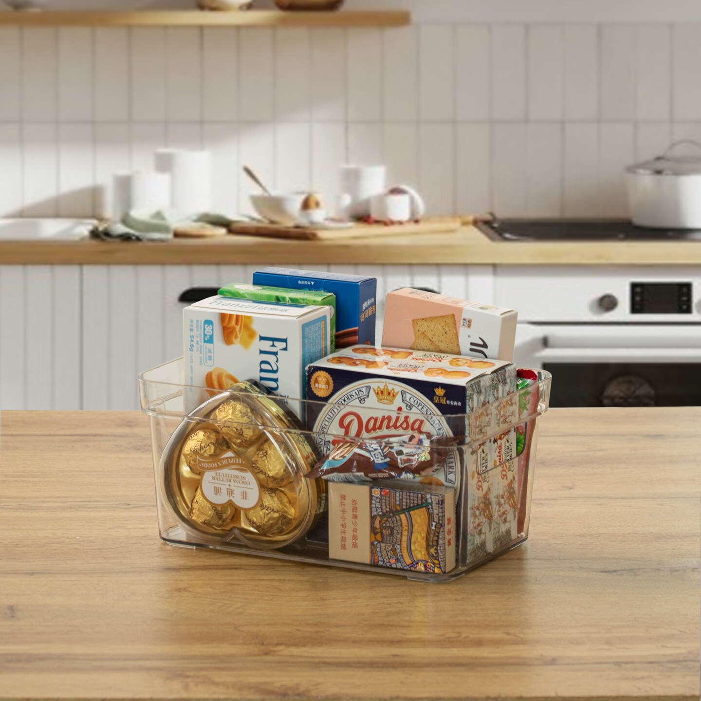 Basicwise Clear Storage Container with Lid For Kitchen Pantry Cabinet & Fridge Storage For Organizing Snacks Produce Supplies Or Essentials Durable Bin For Home Dorm Apartment Or Office Use