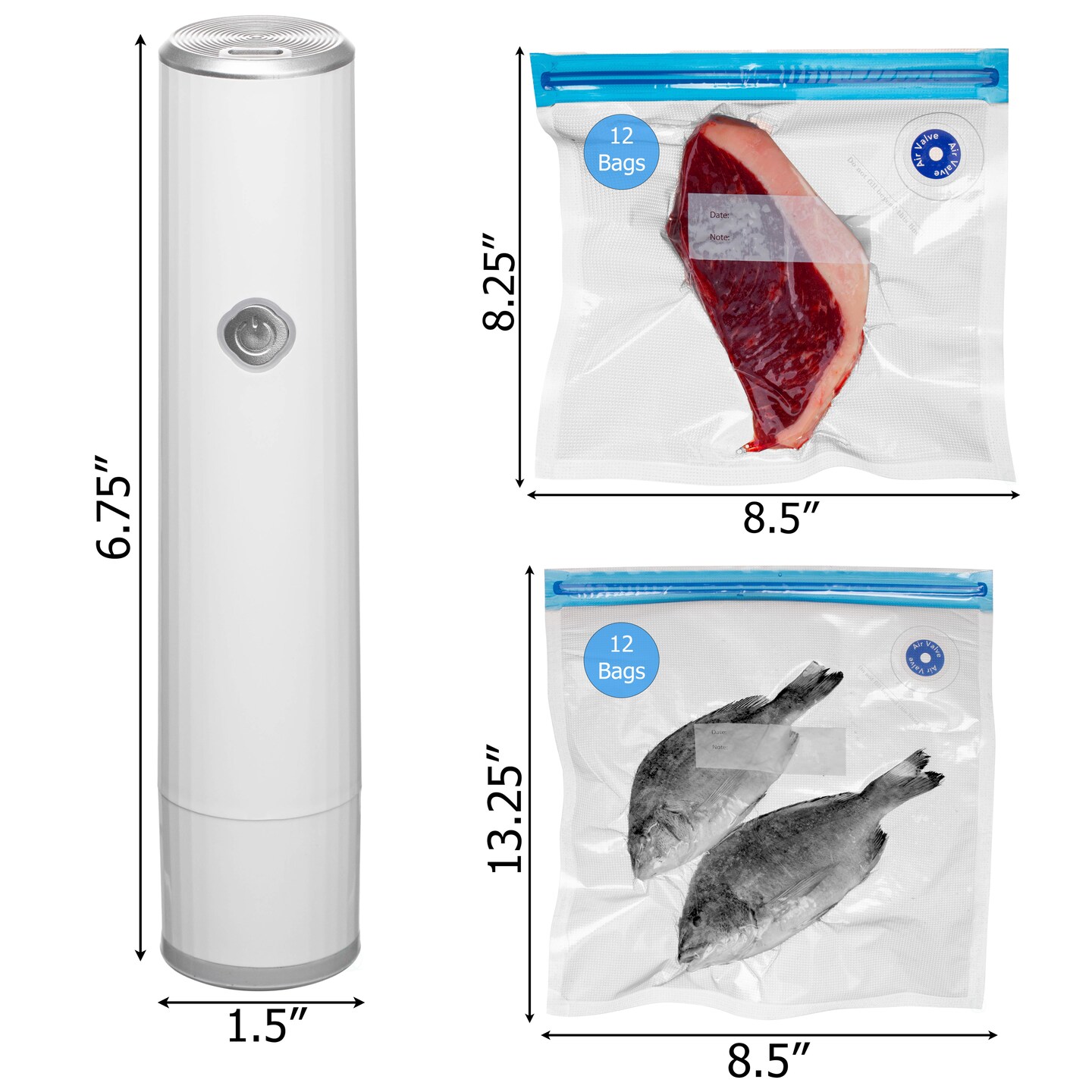 Basicwise Handheld Vacuum Sealer Machine with Reusable Bags Food Storage Kitchen Organization Sous Vide Cooking Pantry Preservation Refrigerator Management Meal Preparation & Airtight Sealing