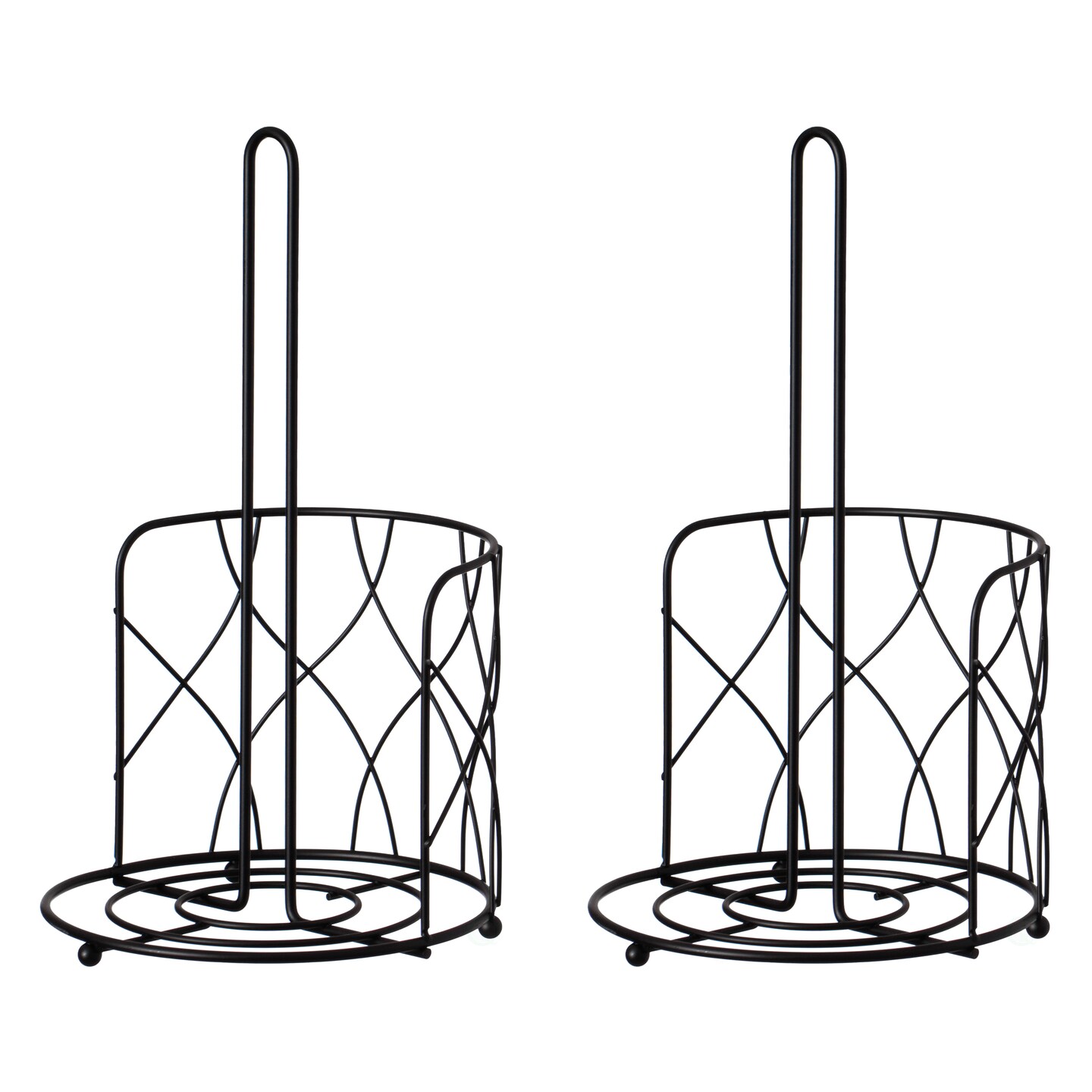 Basicwise Paper Towel Holder Countertop Set of 2 - Black Iron Stand with Weighted Non-Slip Base, One-Handed Tear, Raised Base Keeps Towels Dry, Modern Kitchen or Bathroom Dispenser