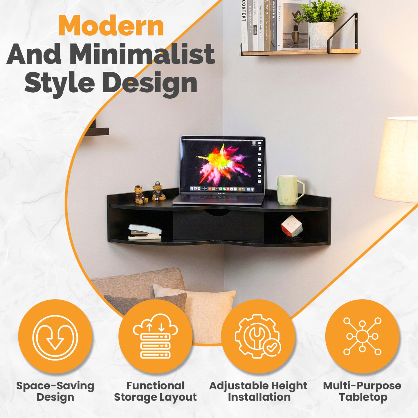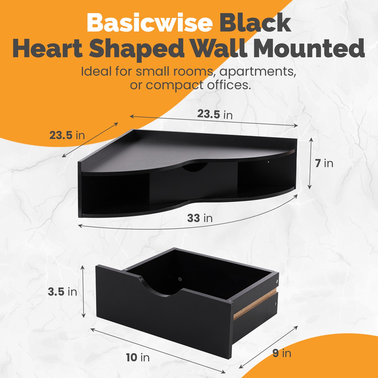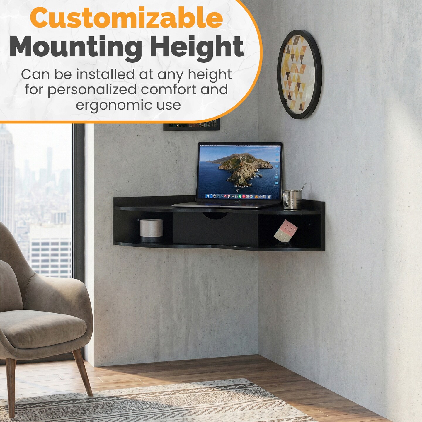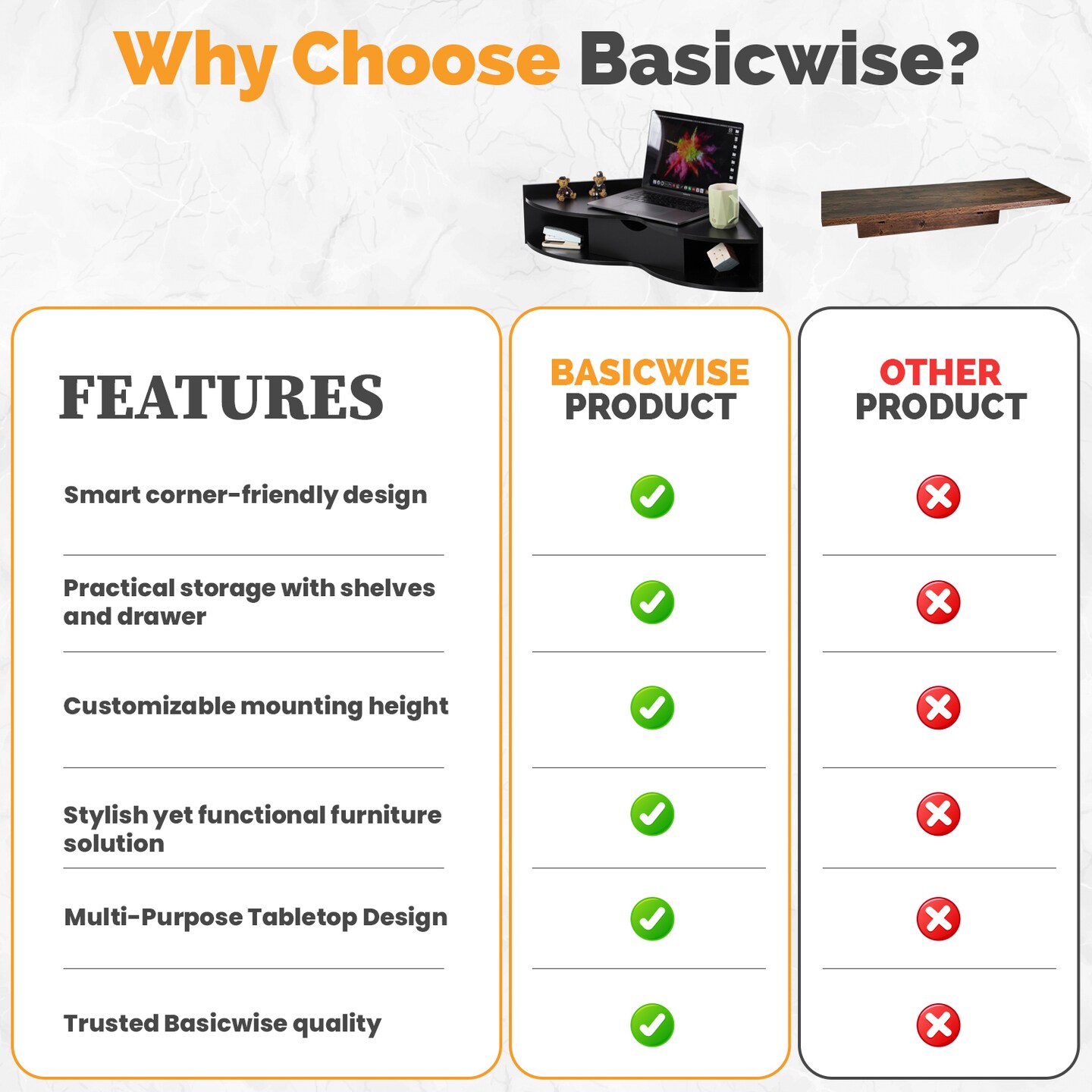 Basicwise Wall Mounted Folding Desk with Drawer and Two Shelves - Fold Down Floating Desk for Small Spaces, Writing Table, Laptop Workstation, Space Saving, Easy Assembly