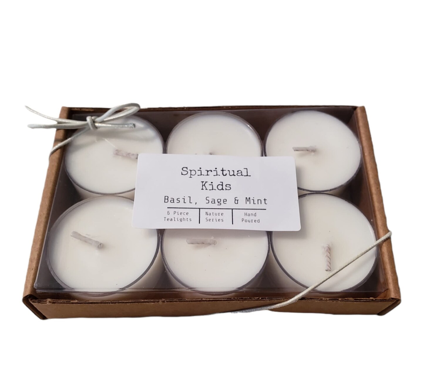 Basil, Sage & Mint Natural Soy Wax 6 Count Tealights Hand Poured with Fragrant/Essential Oils