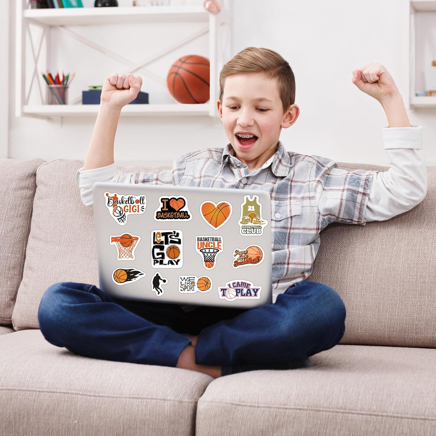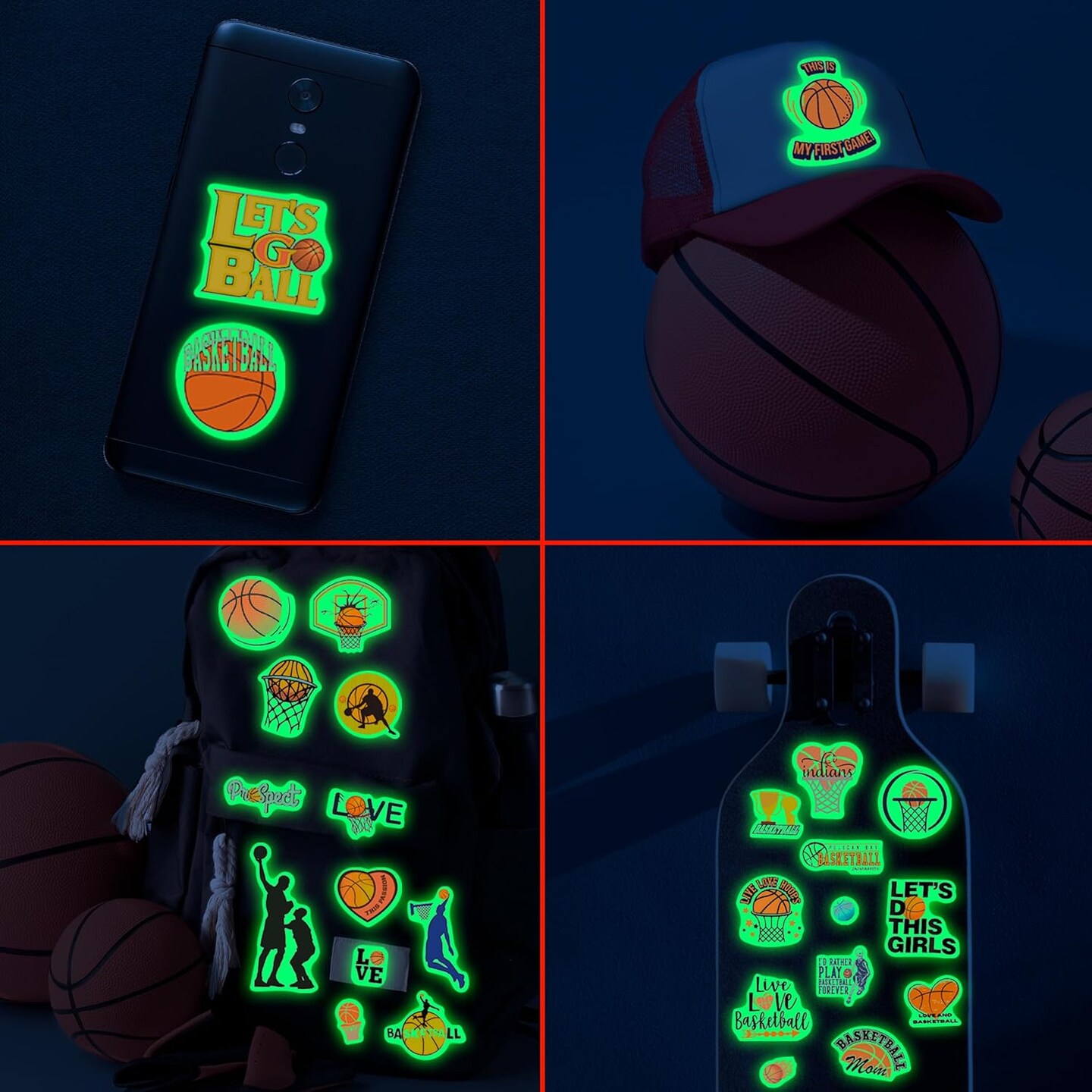 Basketball Water Bottle Stickers for Kids Glow in The Dark, 67 PCS Vinyl Stickers Pack for Laptop Skateboard Phone Case, Cute Colorful Sports Decals for Teens