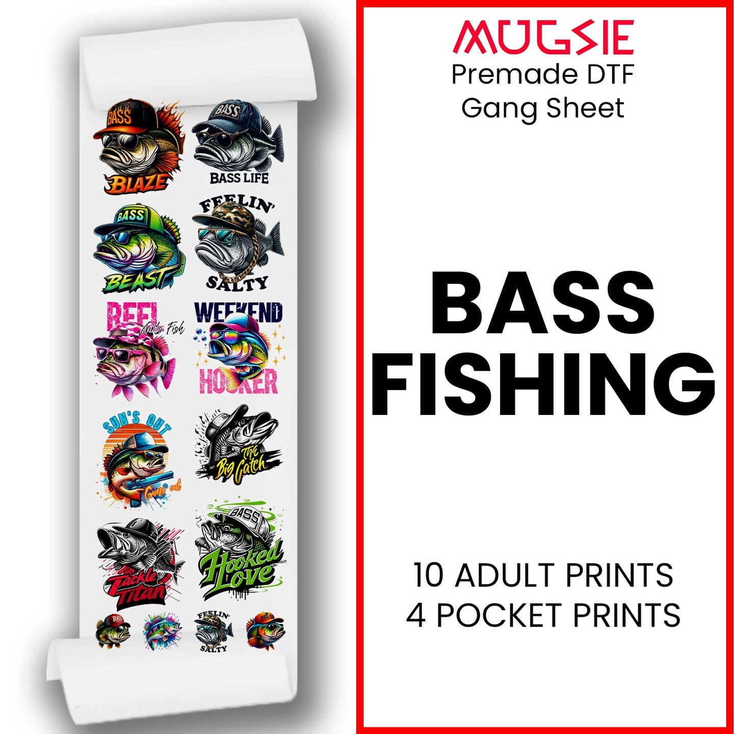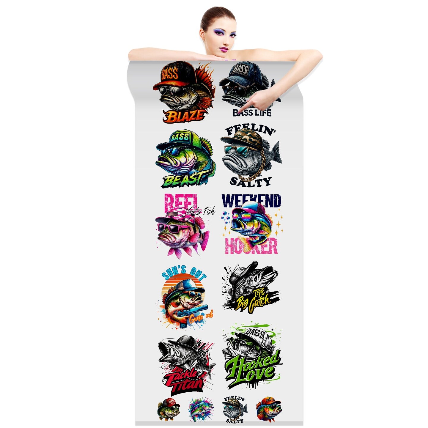 Bass Fishing DTF Transfer Gang Sheets - 22x60 Direct-to-Film