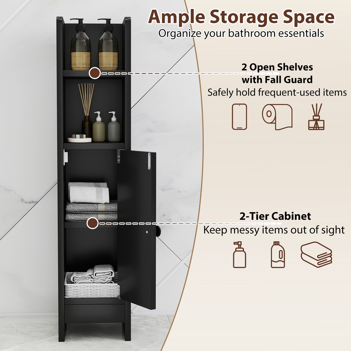 Bathroom Corner Cabinet with 2 Shelves and Magnetic Door