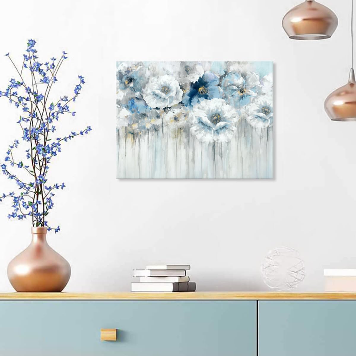 Bathroom Flowers Canvas Wall Art Abstract White Floral Pictures with Gold