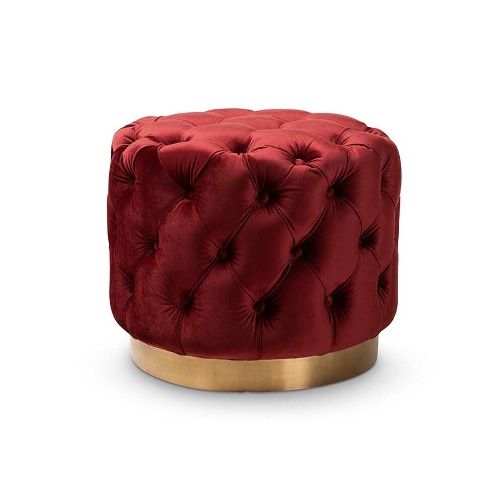 Baxton Studio Valeria Glam Burgundy Red Velvet Fabric Upholstered Gold-Finished Button Tufted Ottoman