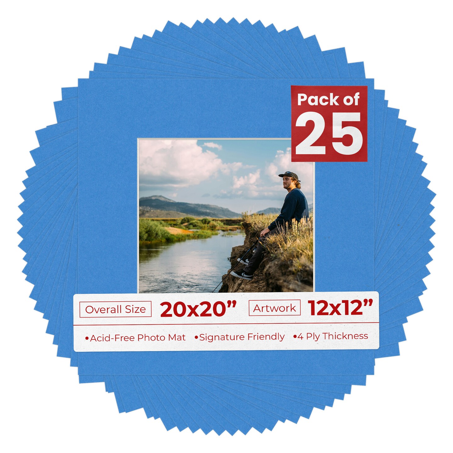 Bay Blue Mat Board for 20x20 Frames - Fits 12x12 Photos