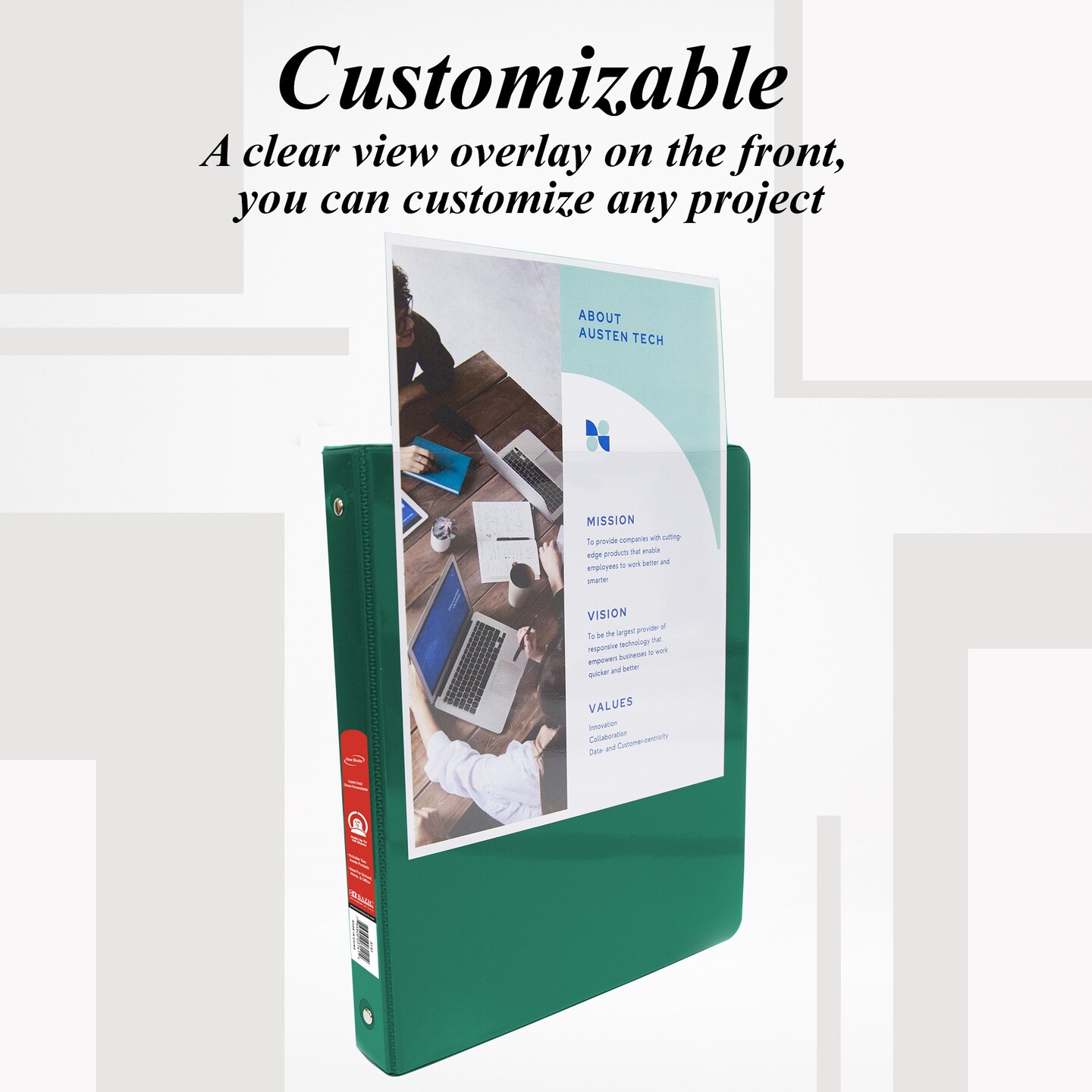 BAZIC 1/2" 3-Ring View Binder w/ 2-Pockets (11 Color Available)