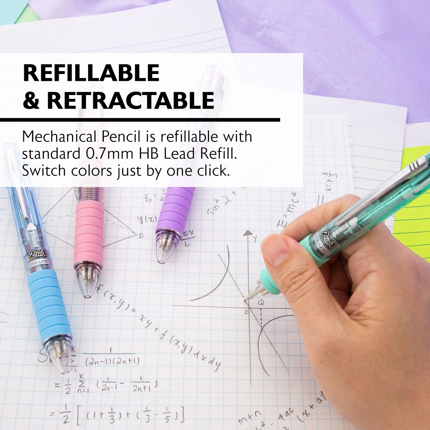 BAZIC 2-In-1 Mechanical Pencil & 4-Fashion Color Pen w/ Grip