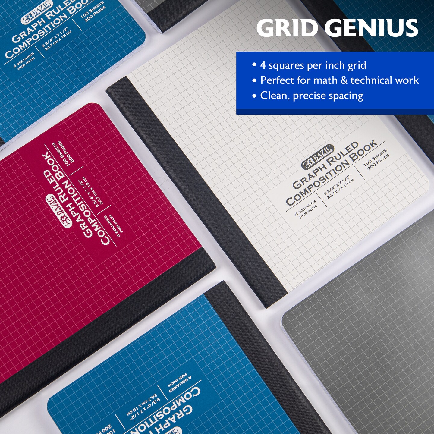 BAZIC 4-1" Quad-Ruled 100 Ct. Composition Book