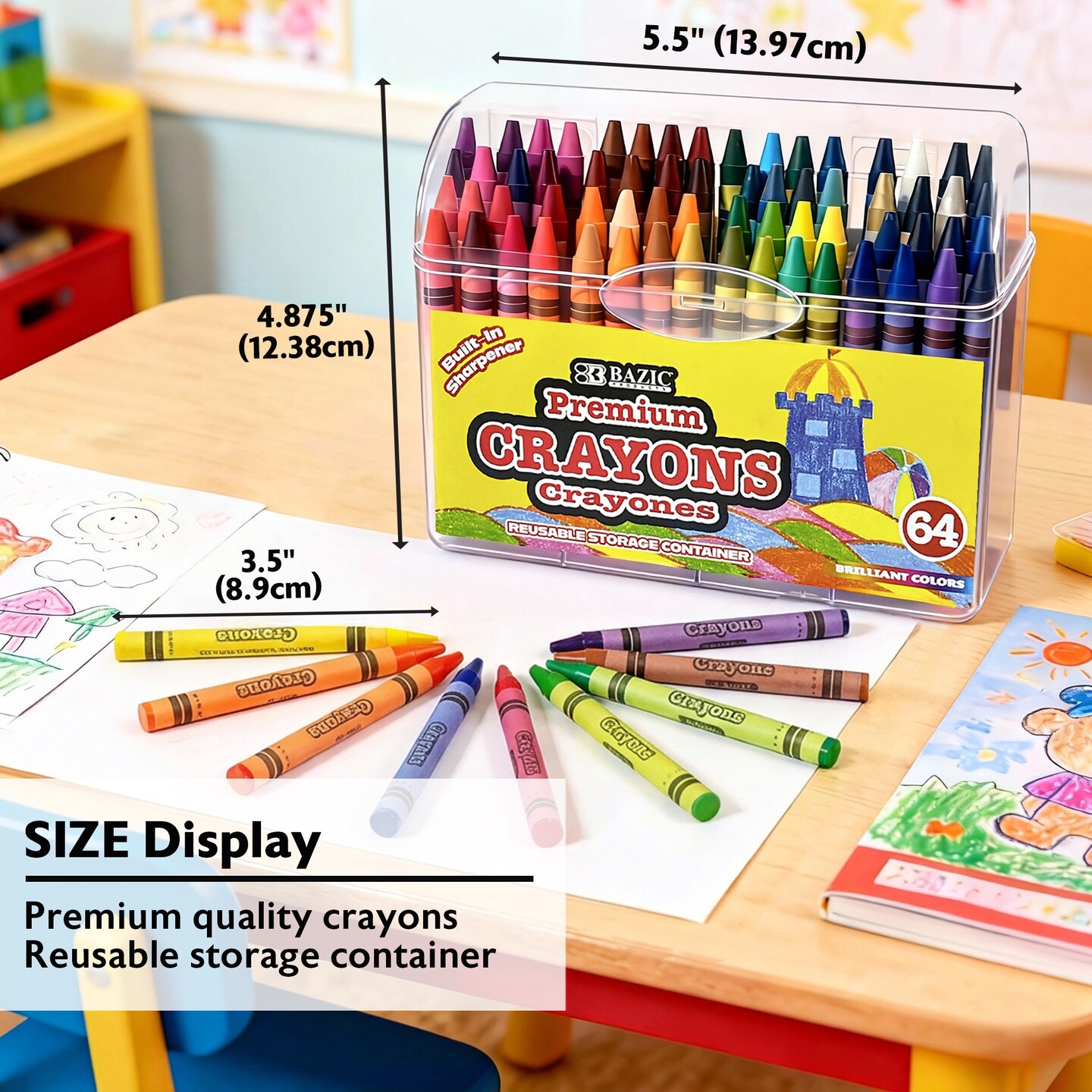 BAZIC 64 ct. Premium Crayons w/sharpener