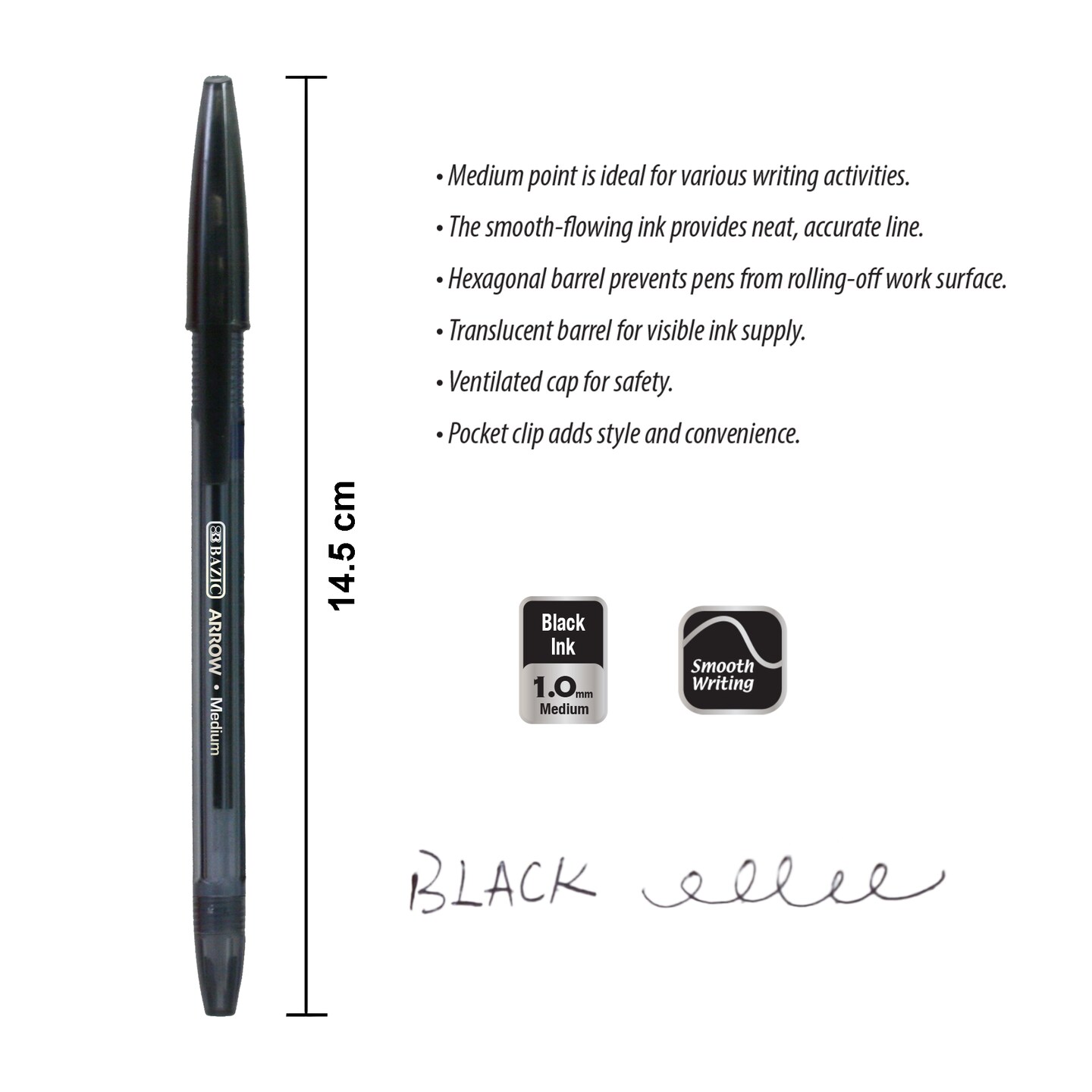 BAZIC Arrow Black Stick Pen (10/Pack)