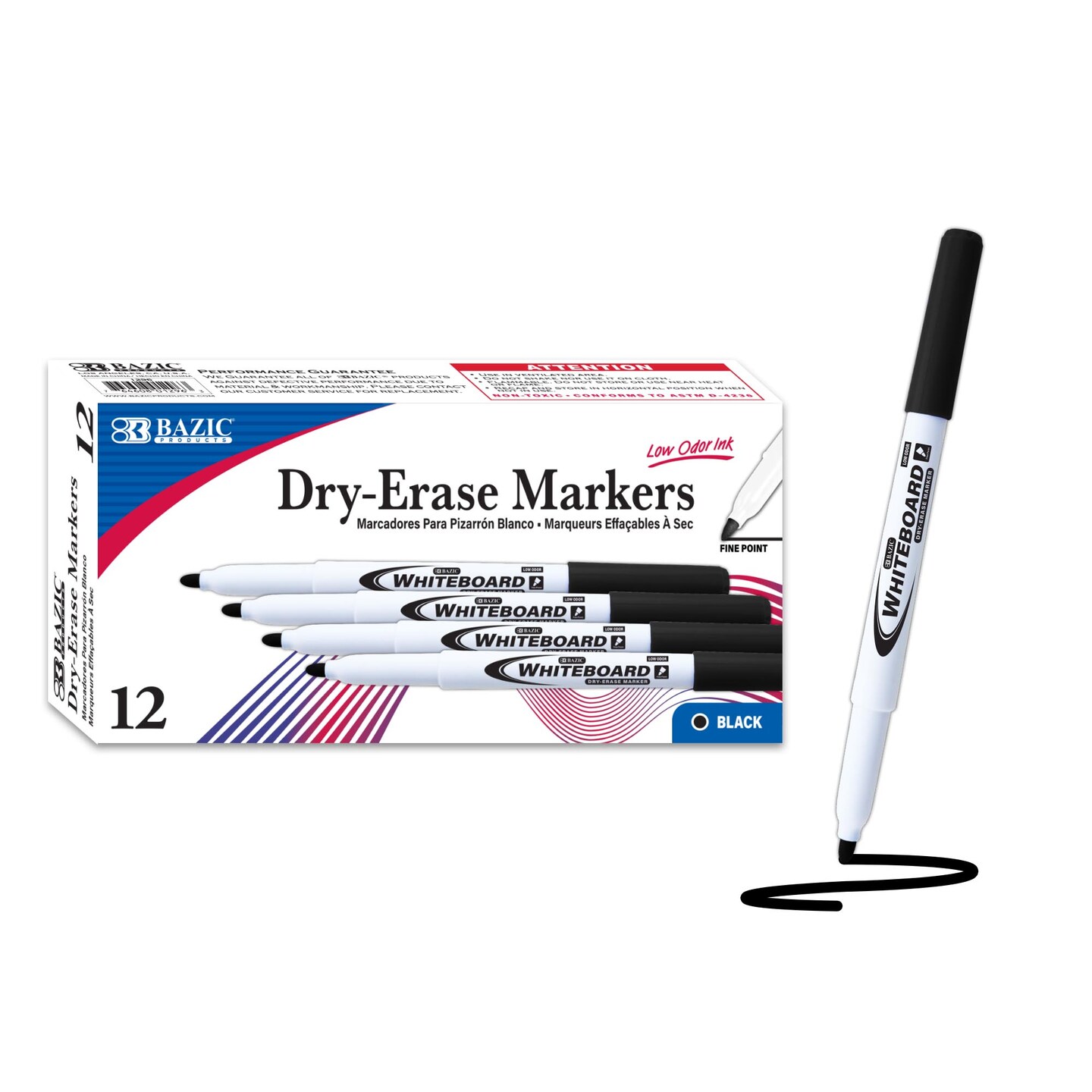 BAZIC Black Fine Tip Dry-Erase Markers (12/Box)