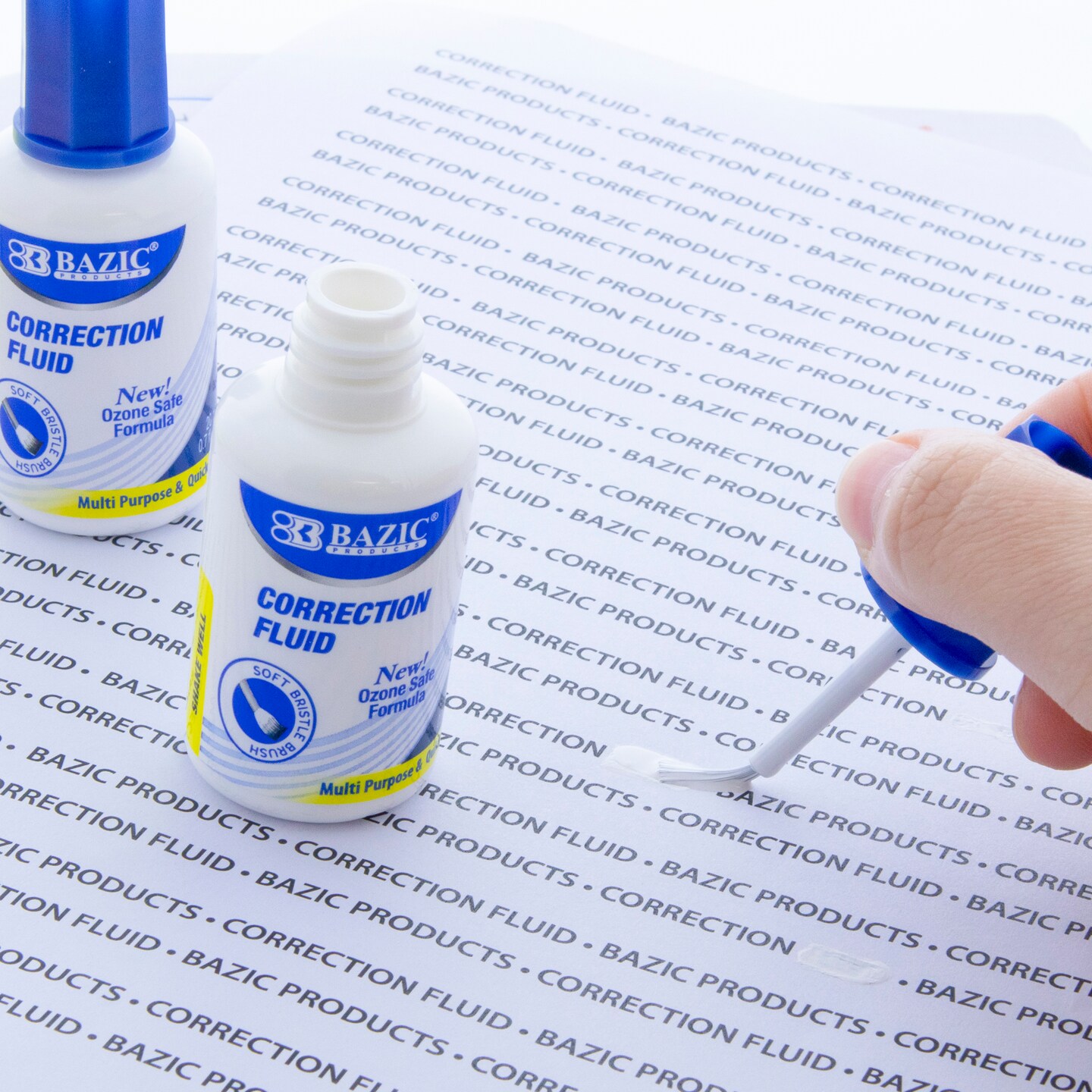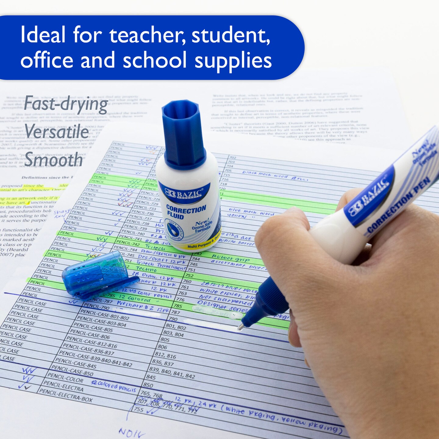 BAZIC Correction Pen & Correction Fluid, Metal Tip (2/Pack)