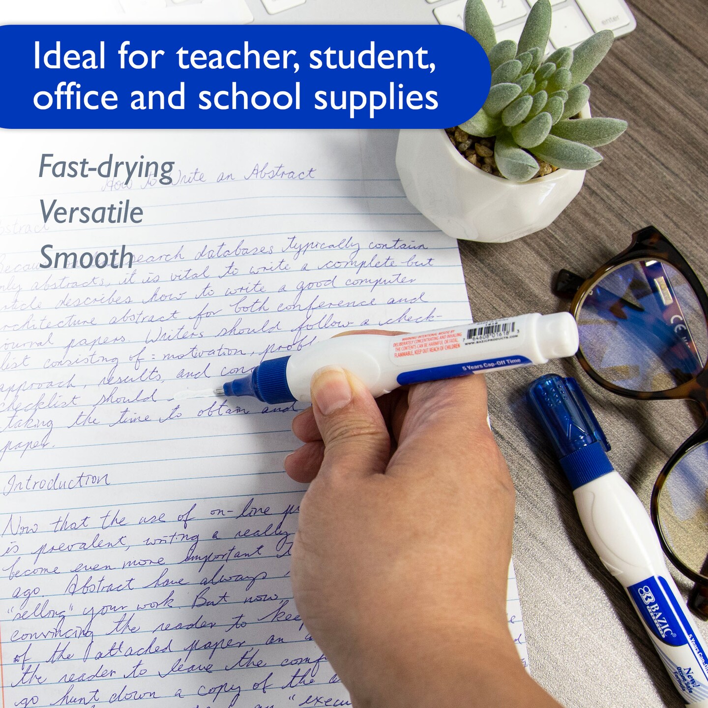 BAZIC Correction Pen Metal Tip 0.2 FL OZ (7 mL)(2/Pack)