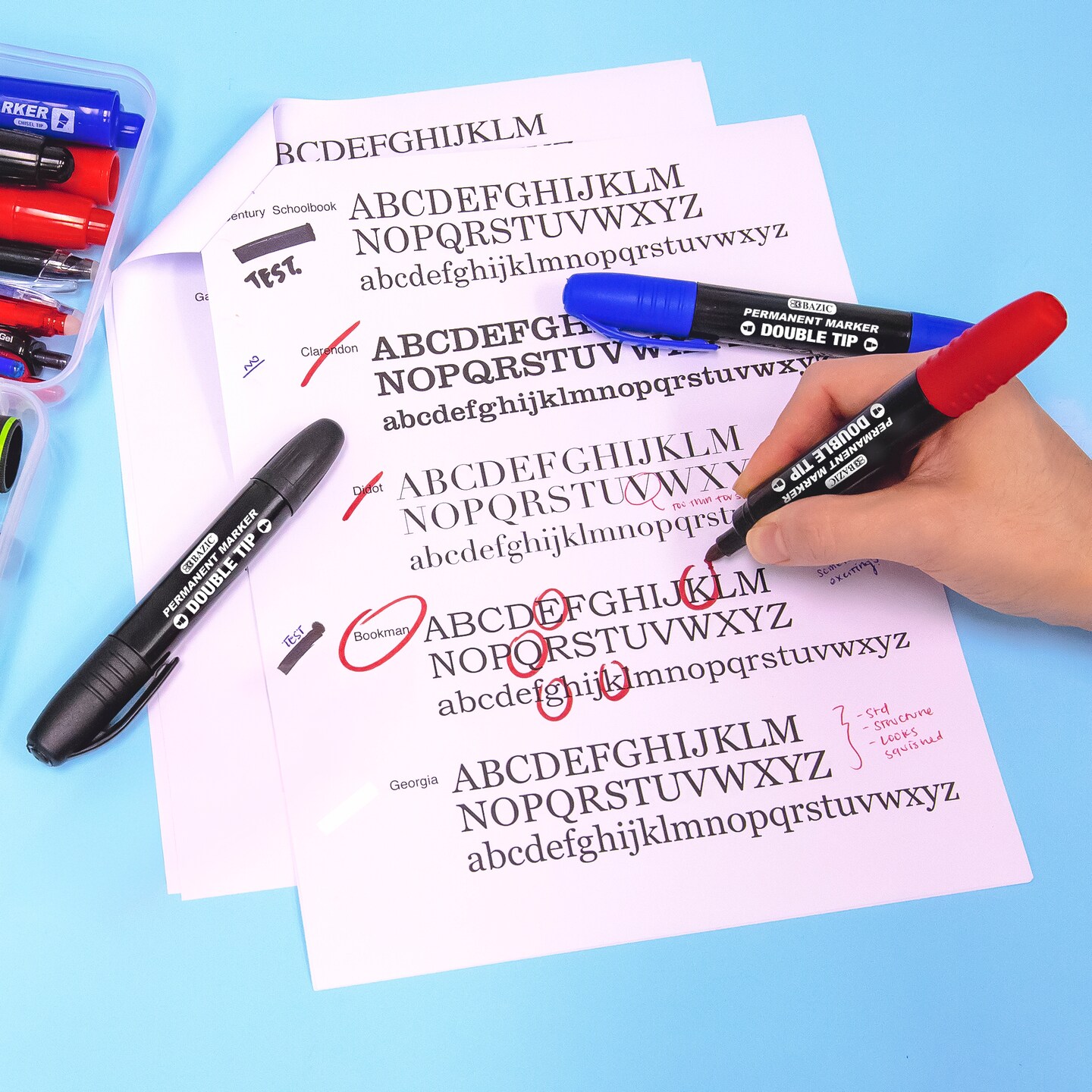 BAZIC Double-Tip Assorted Color Permanent Marker (3/Pack)