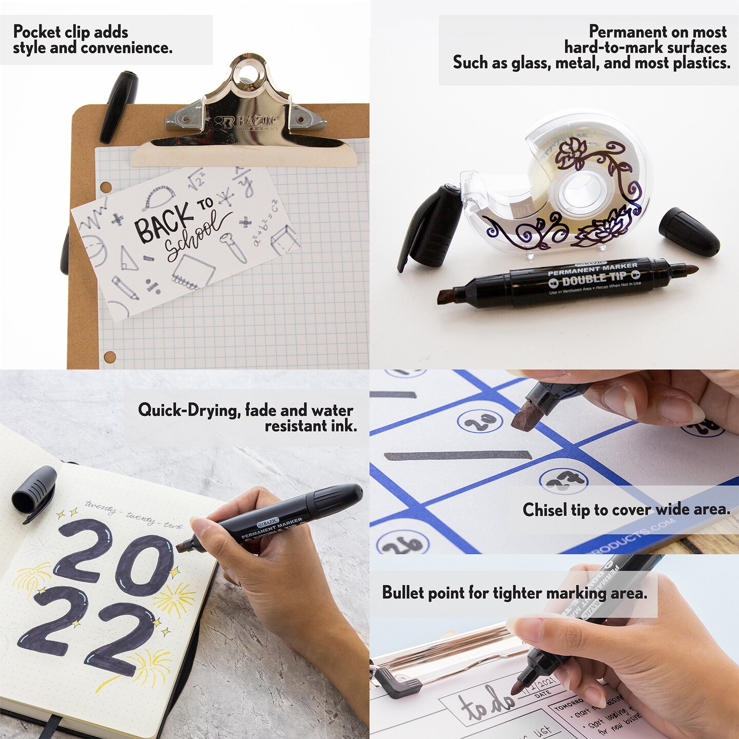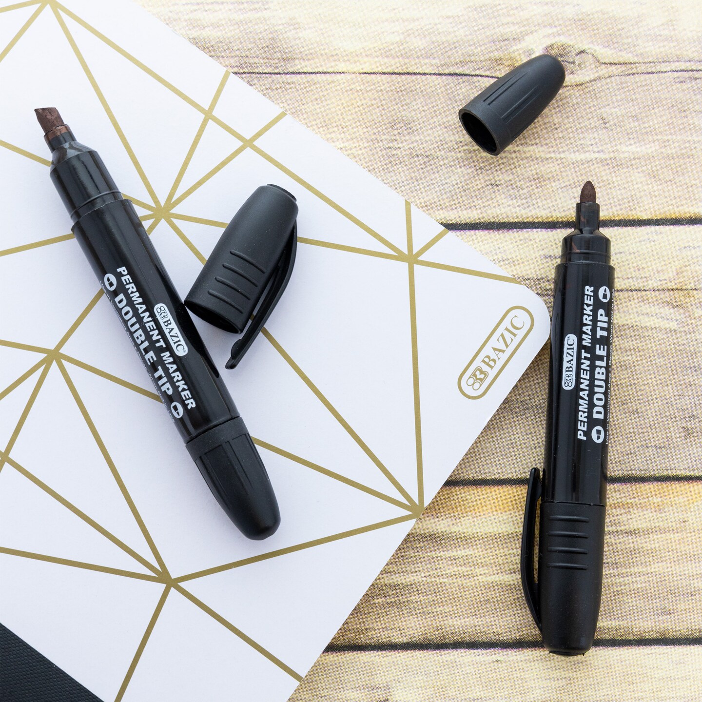 BAZIC Double-Tip Black Color Permanent Marker (2/Pack)