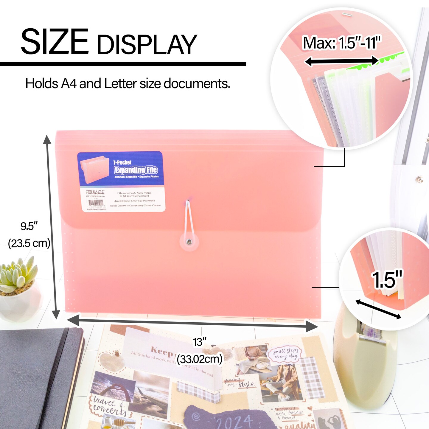 BAZIC Expanding File A4/Letter Size Poly 7-Pocket Pastel Edition