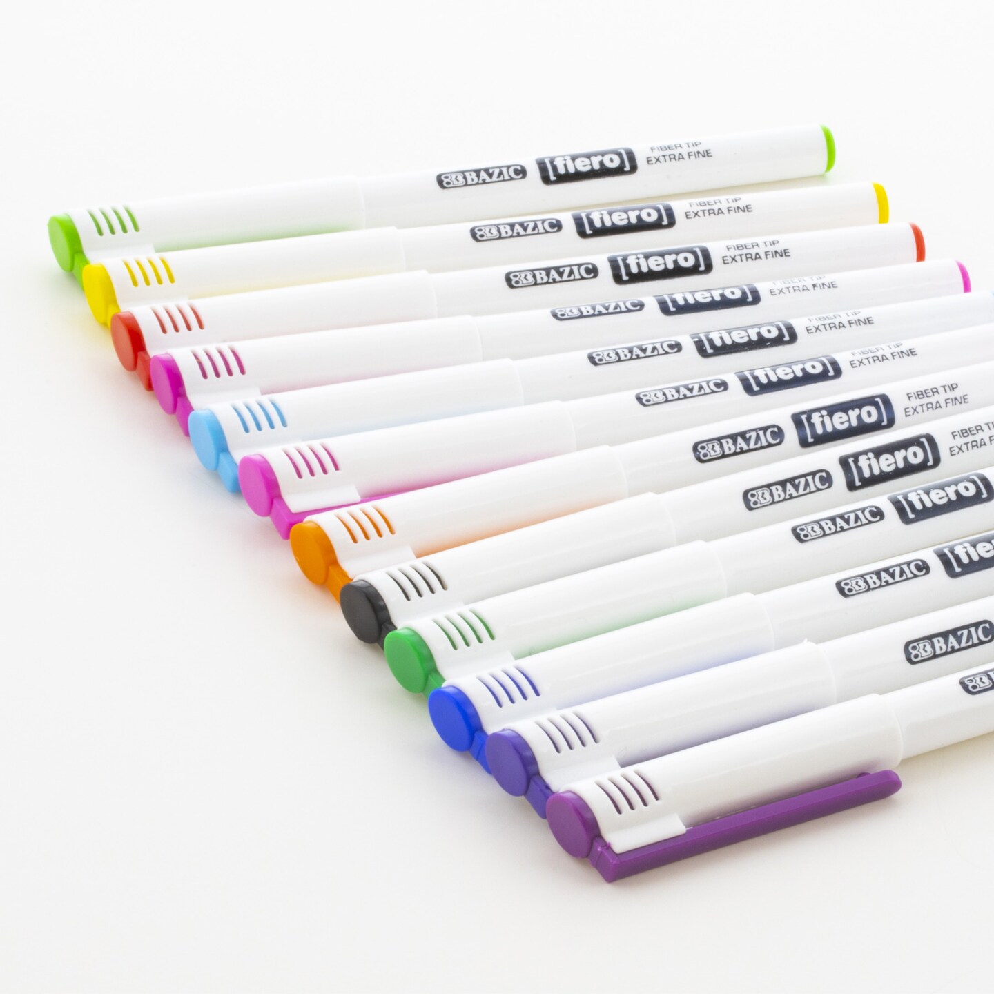BAZIC Fiero Assorted Color Fiber Tip Fineliner Pen 12 Color