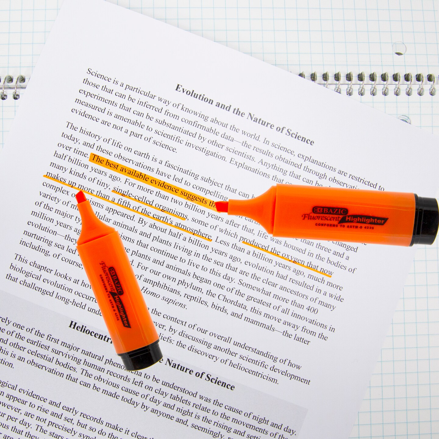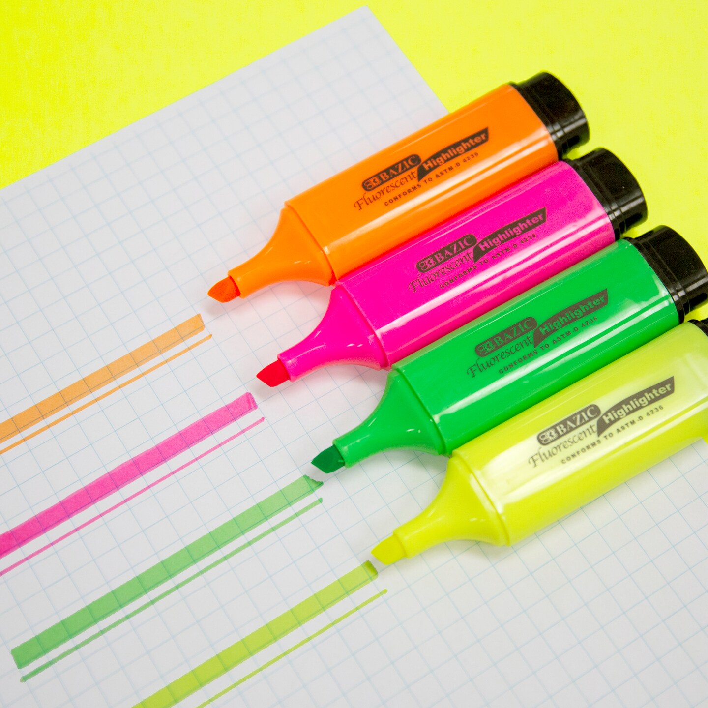 BAZIC Fluorescent Highlighters w/ Pocket Clip (3/Pack)