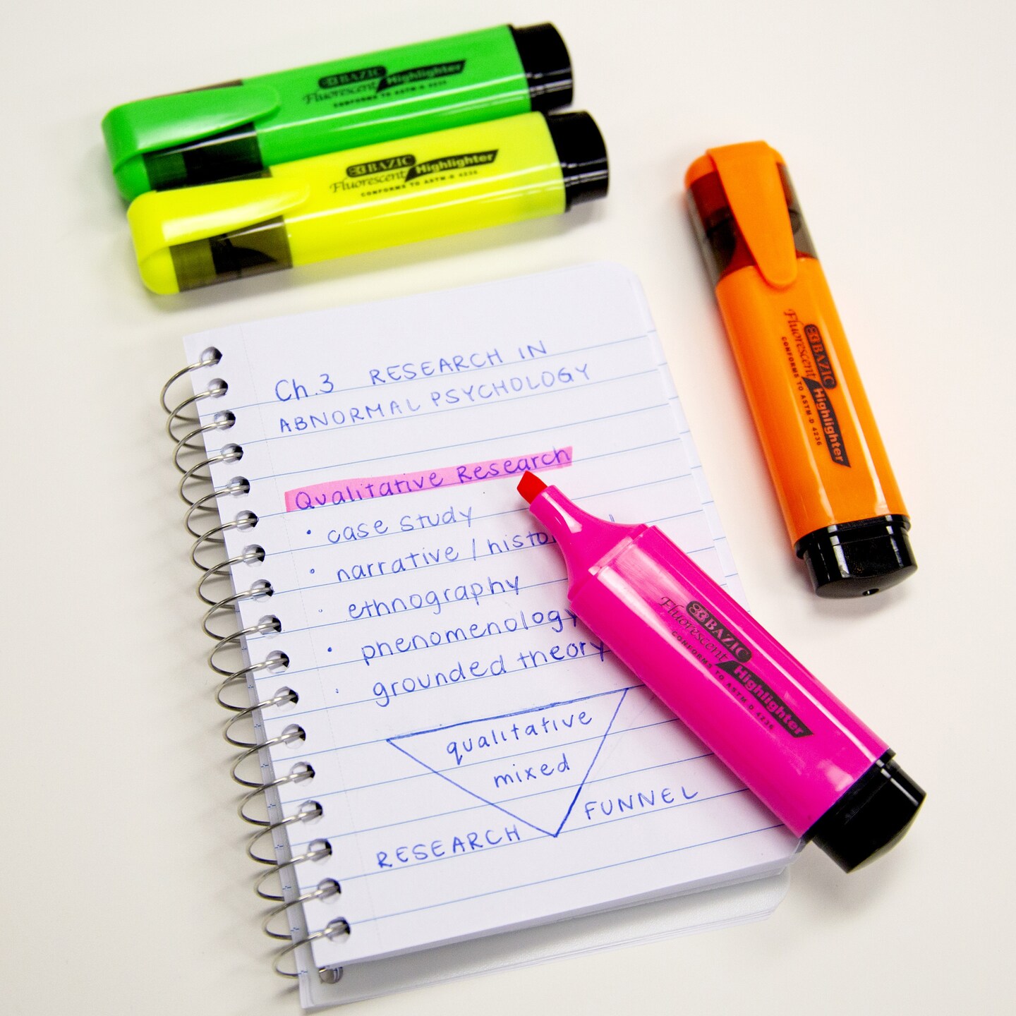 BAZIC Fluorescent Highlighters w/ Pocket Clip (4/Pack)