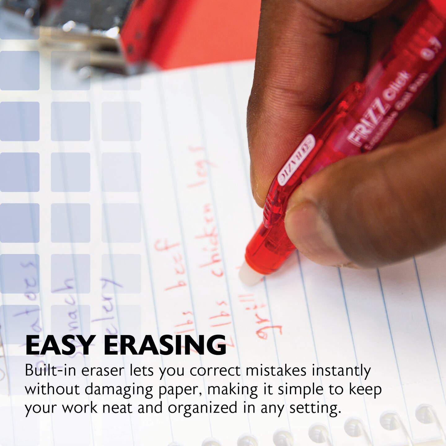 BAZIC Frizz Assorted Color Erasable Gel Retractable Pen with Grip (3/Pack)