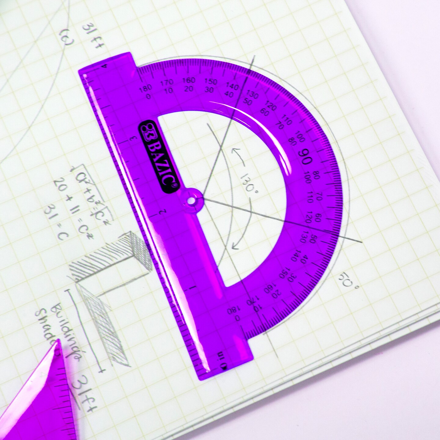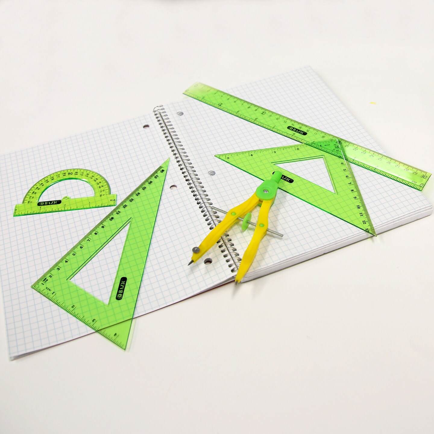 BAZIC Geometry Ruler Combination Sets 4-Piece w/ Center Wheel Compass