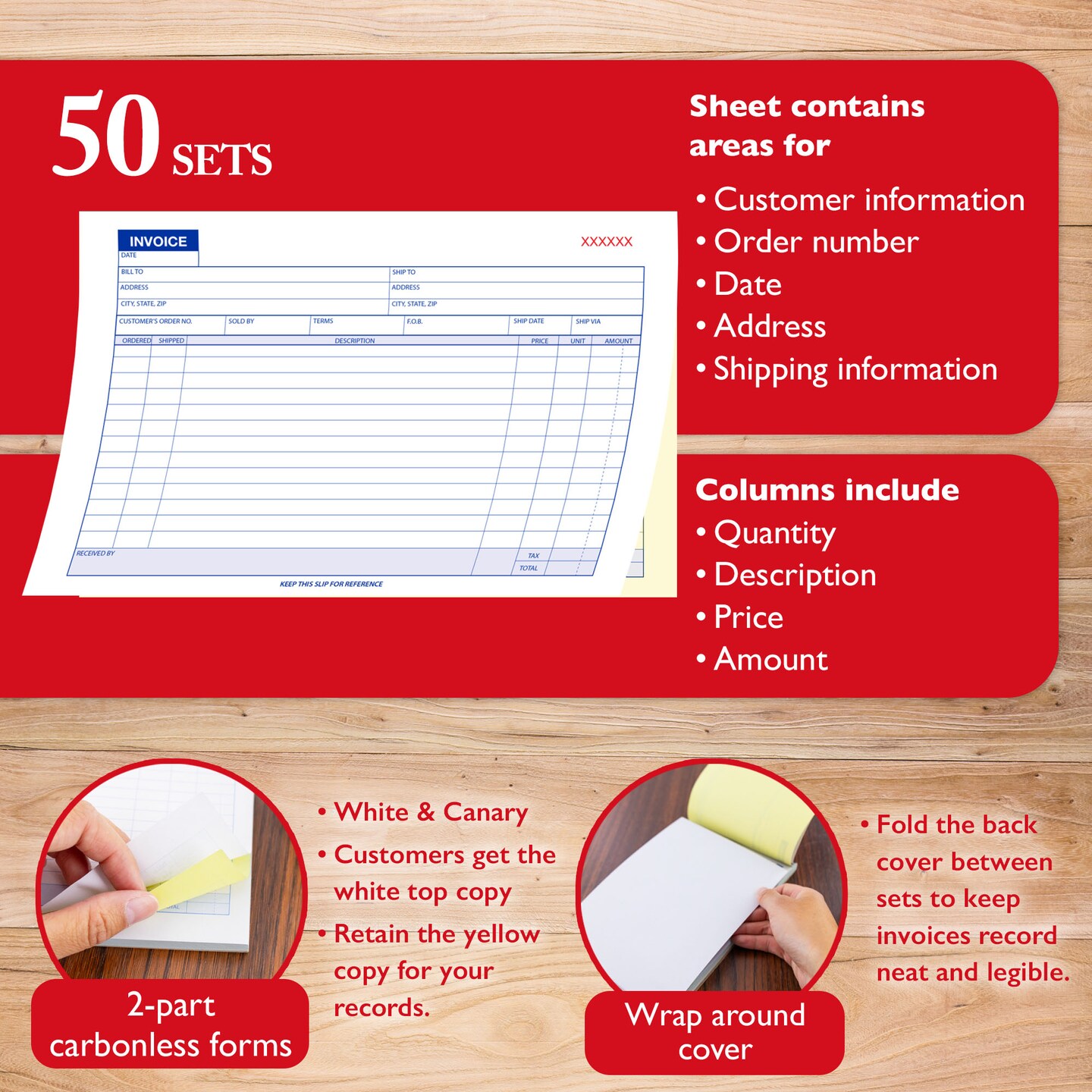 BAZIC Invoice Book 2-Part Carbonless 5 9/16" x 8 7/16" (50 Sets)