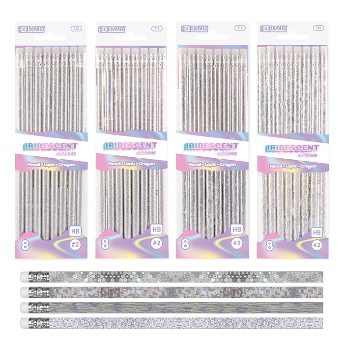 BAZIC Iridescent Holographic Pencil w/ Eraser (8/Pack)