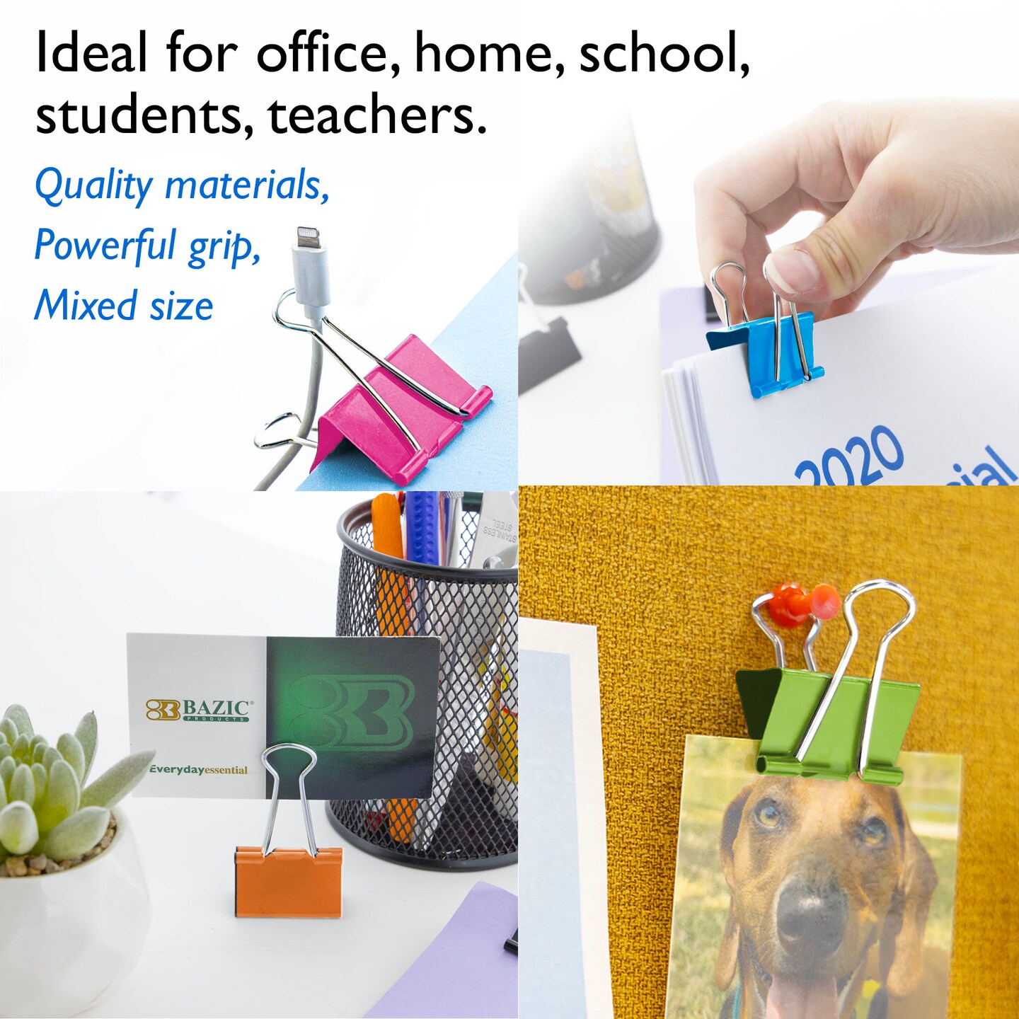 BAZIC Large 2" (51mm) Assorted Color Binder Clip (4/Pack)