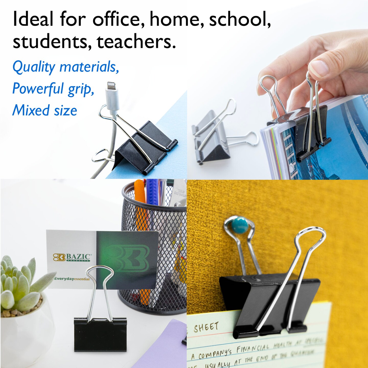 BAZIC Large 2" (51mm) Black Binder Clip (4/Pack)