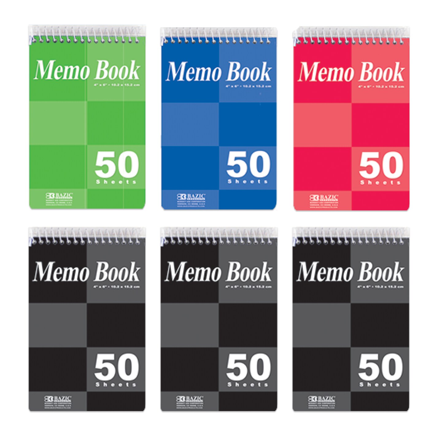 BAZIC Memo Books Top Bound Spiral 4" X 6" 50 Ct. (2/Pack)