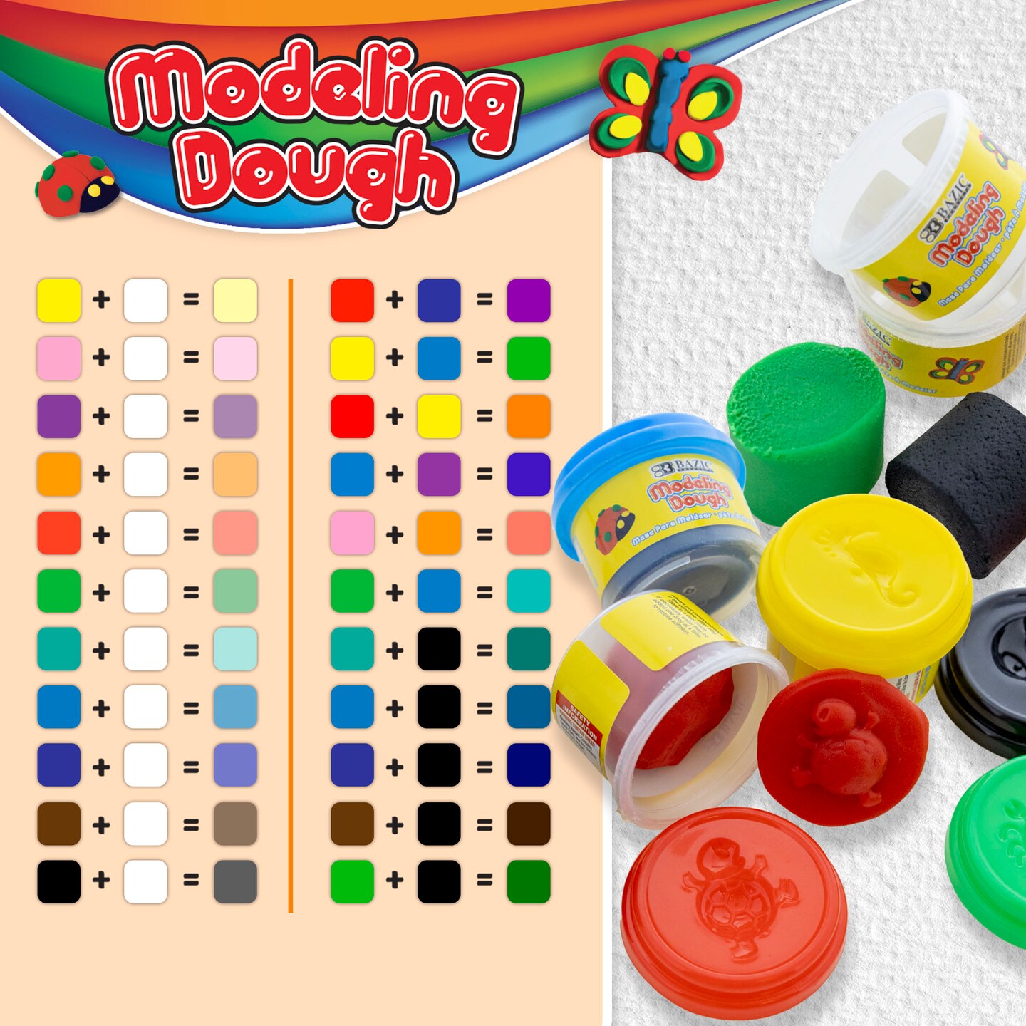 BAZIC Modeling Dough Primary Color 1 Oz. (5/Pack)