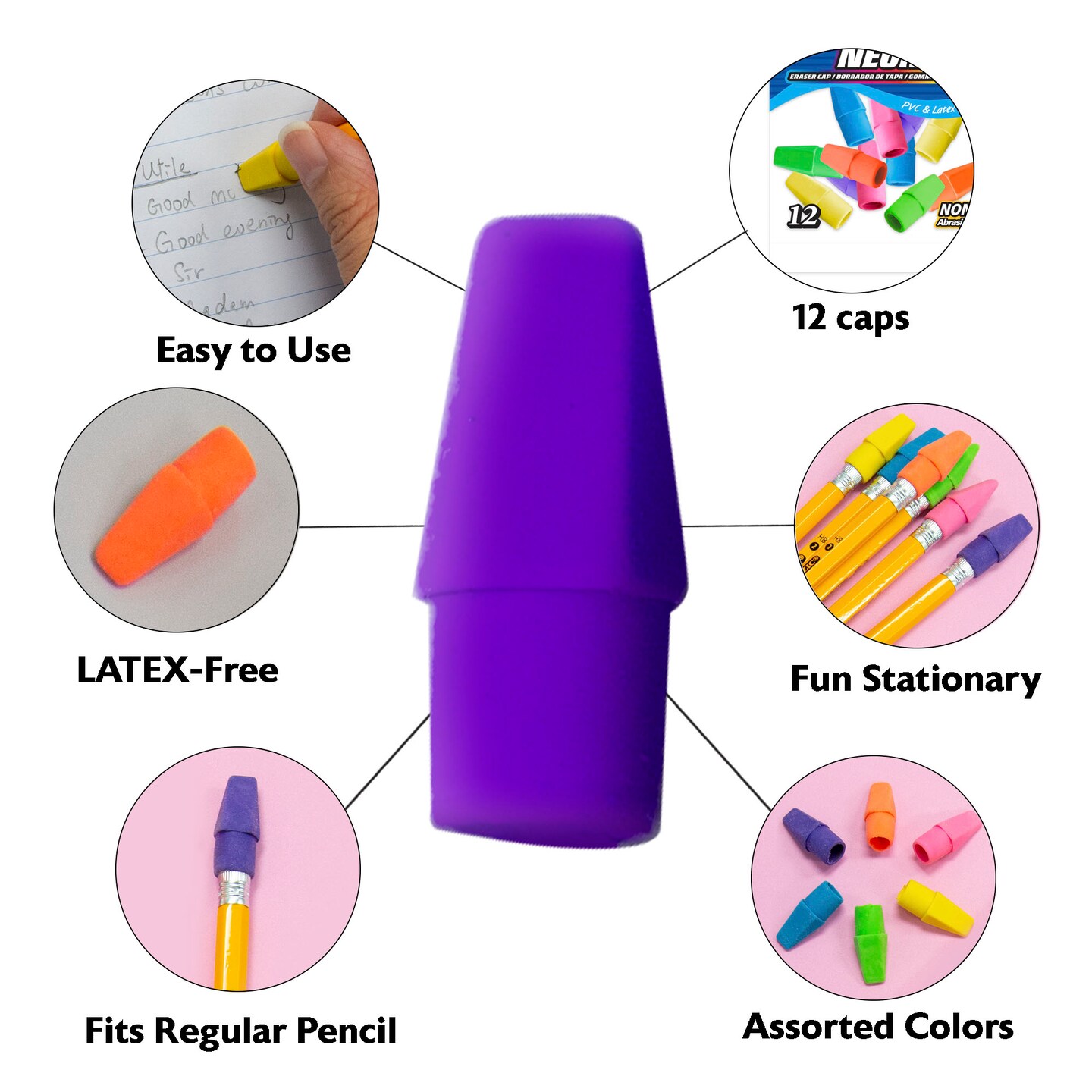 BAZIC Neon Eraser Cap (12/Pack)
