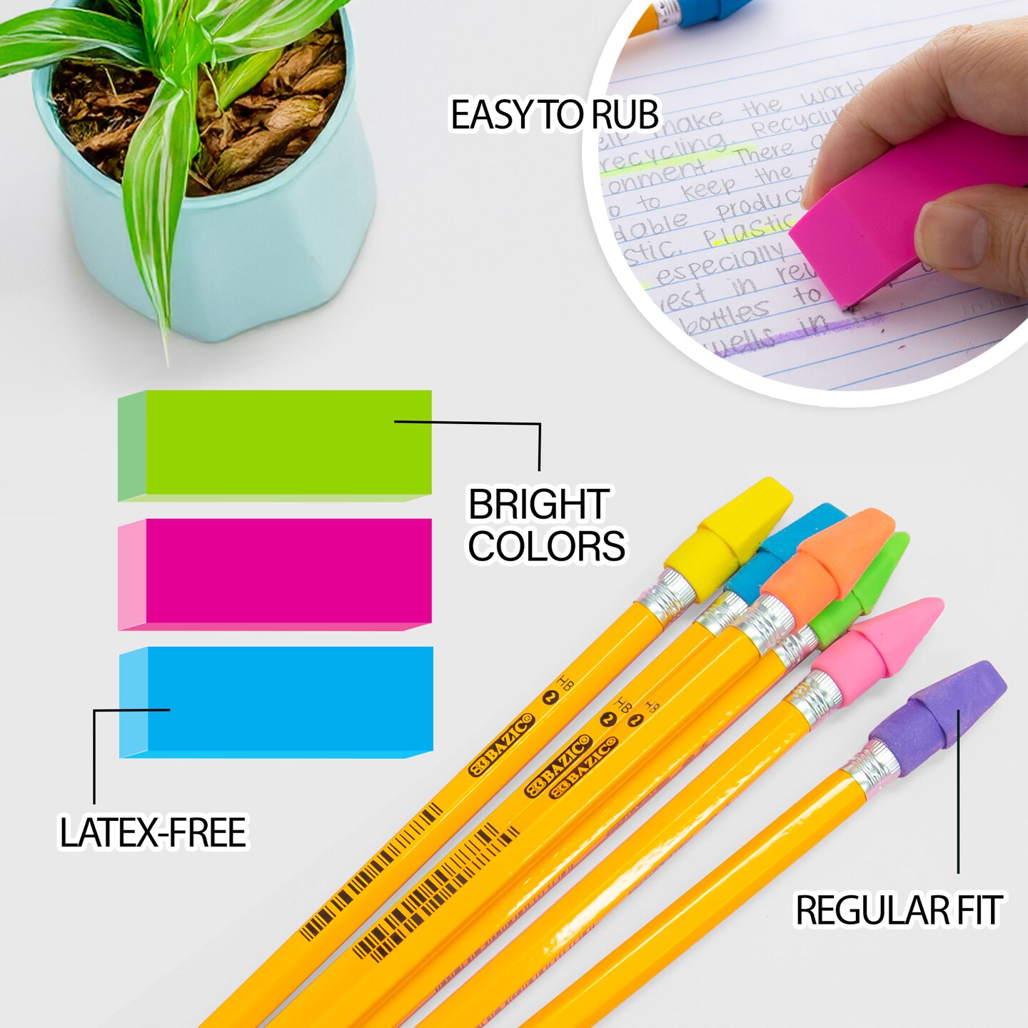 BAZIC Neon Eraser Sets ( 15/Pack)