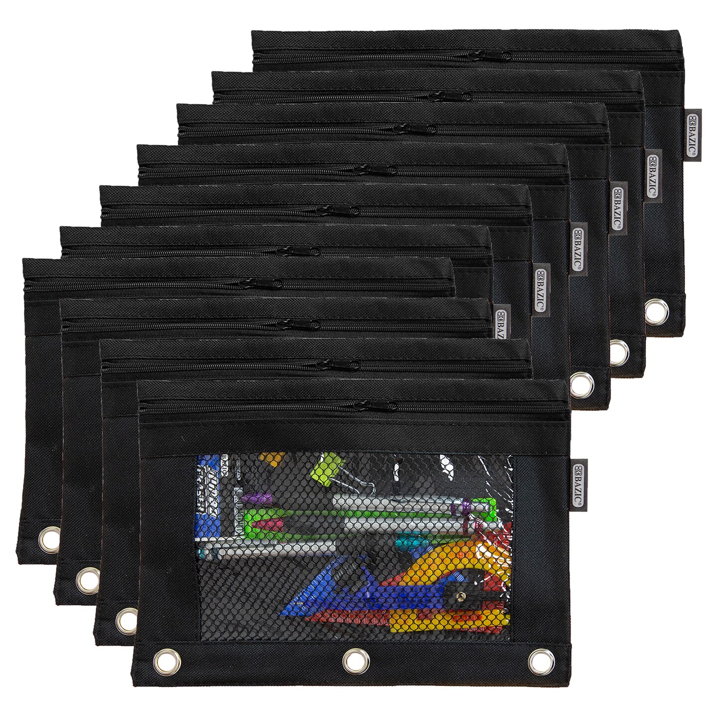 BAZIC Pencil Pouch 3-Ring Black Color w/ Mesh Window