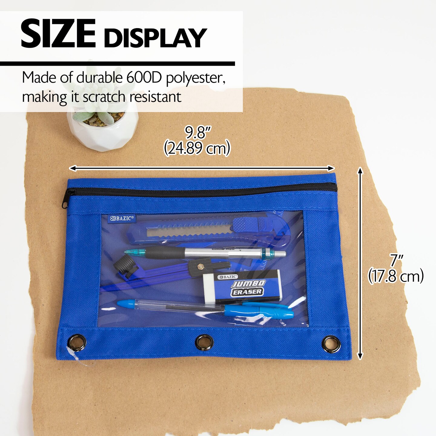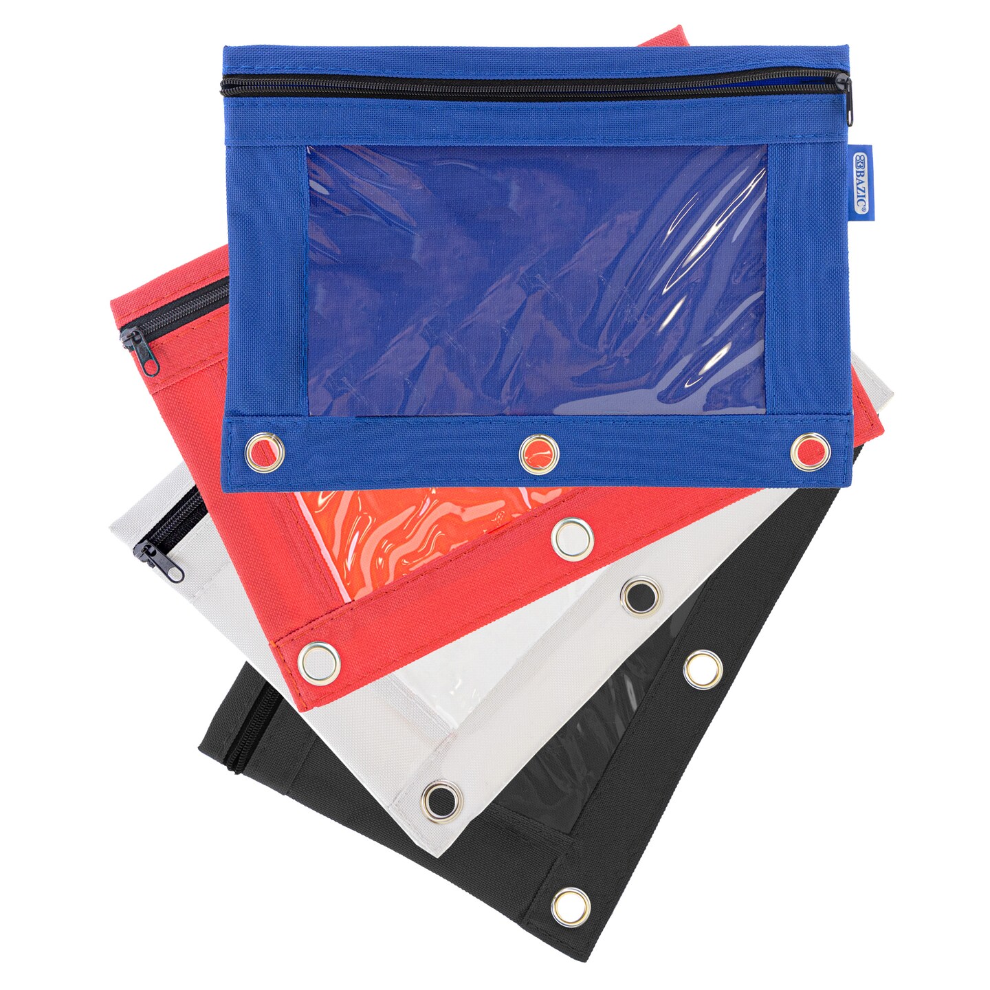 BAZIC Pencil Pouch 3-Ring Bright Color w/ Clear Window