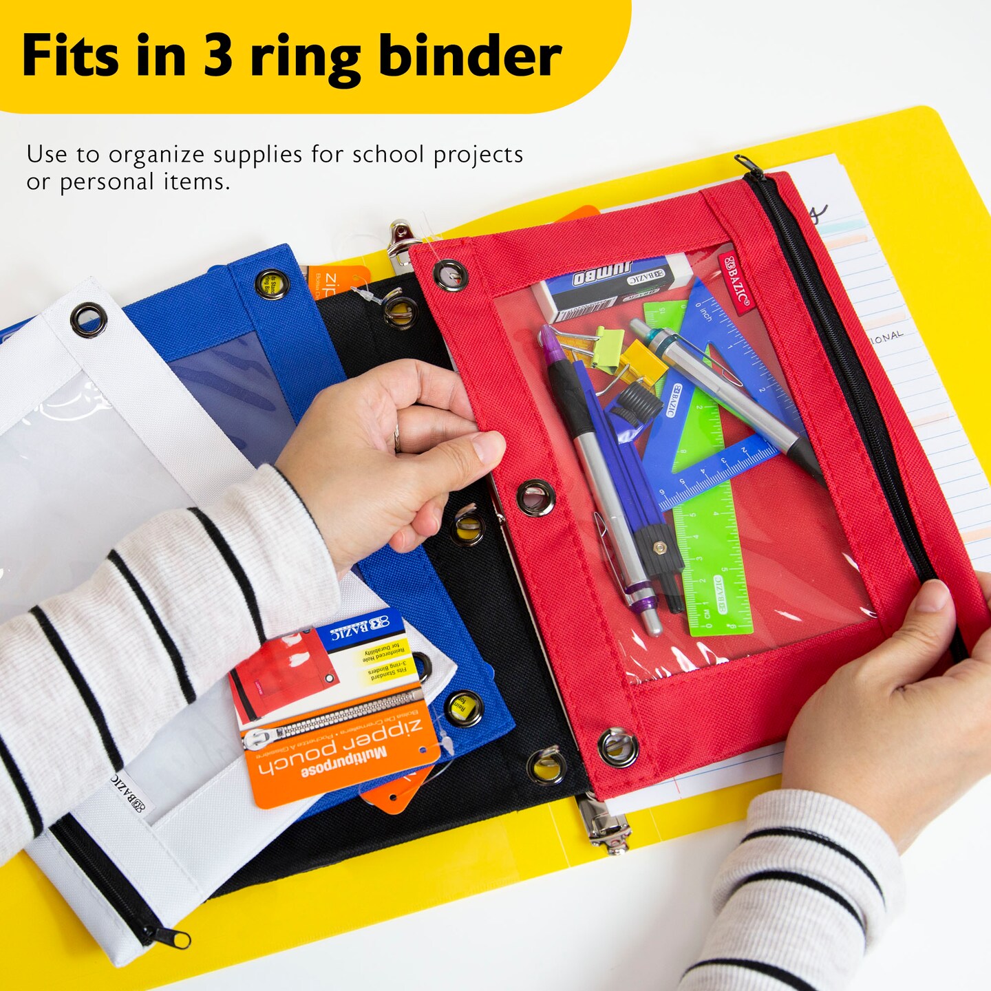 BAZIC Pencil Pouch 3-Ring Bright Color w/ Clear Window