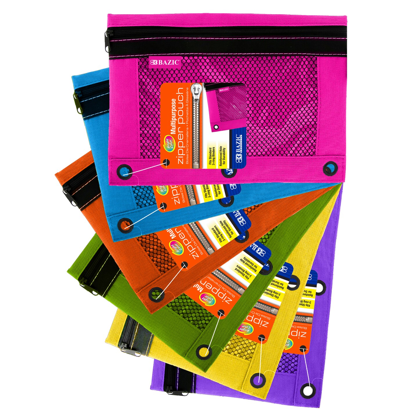 BAZIC Pencil Pouch 3-Ring Bright Color w/ Mesh Window
