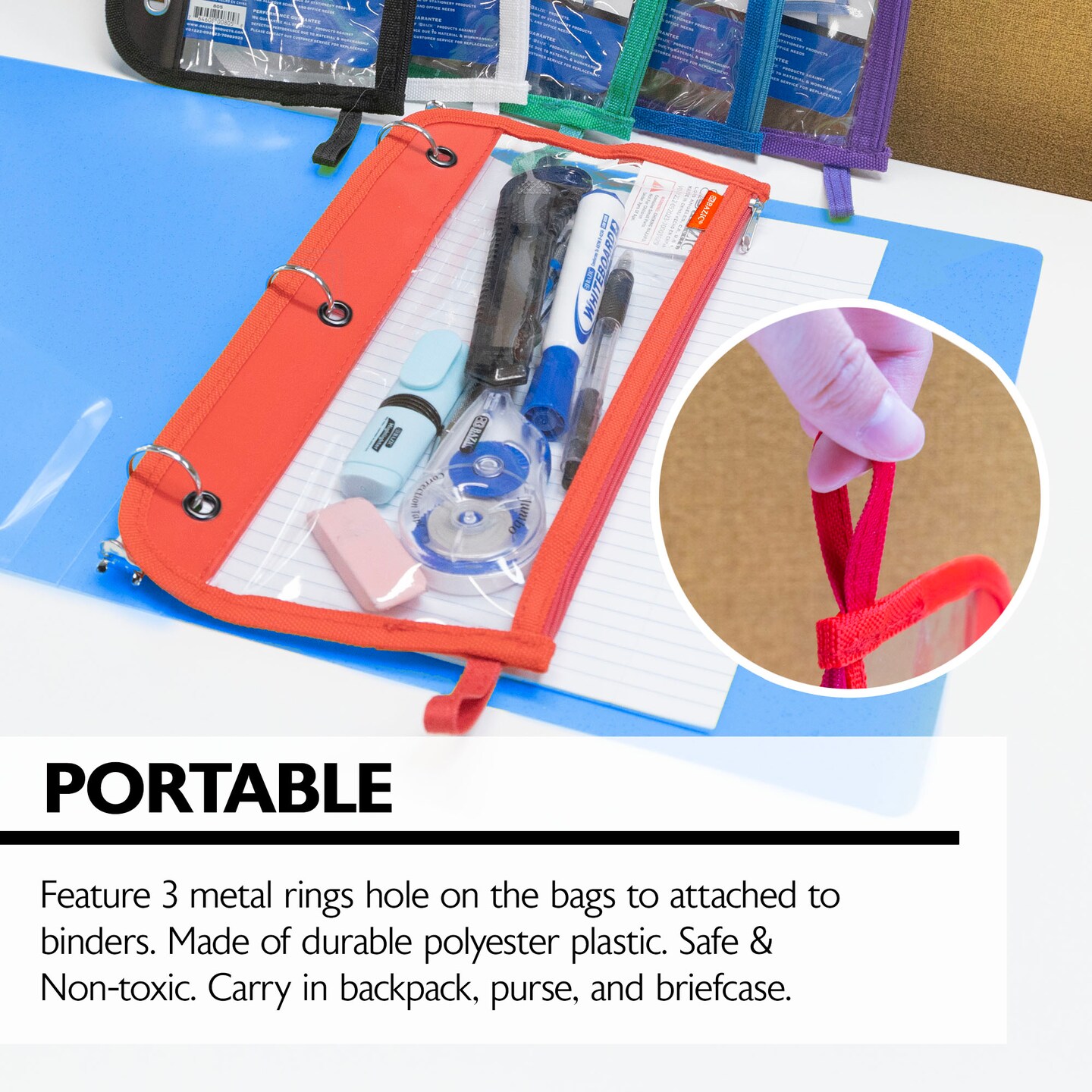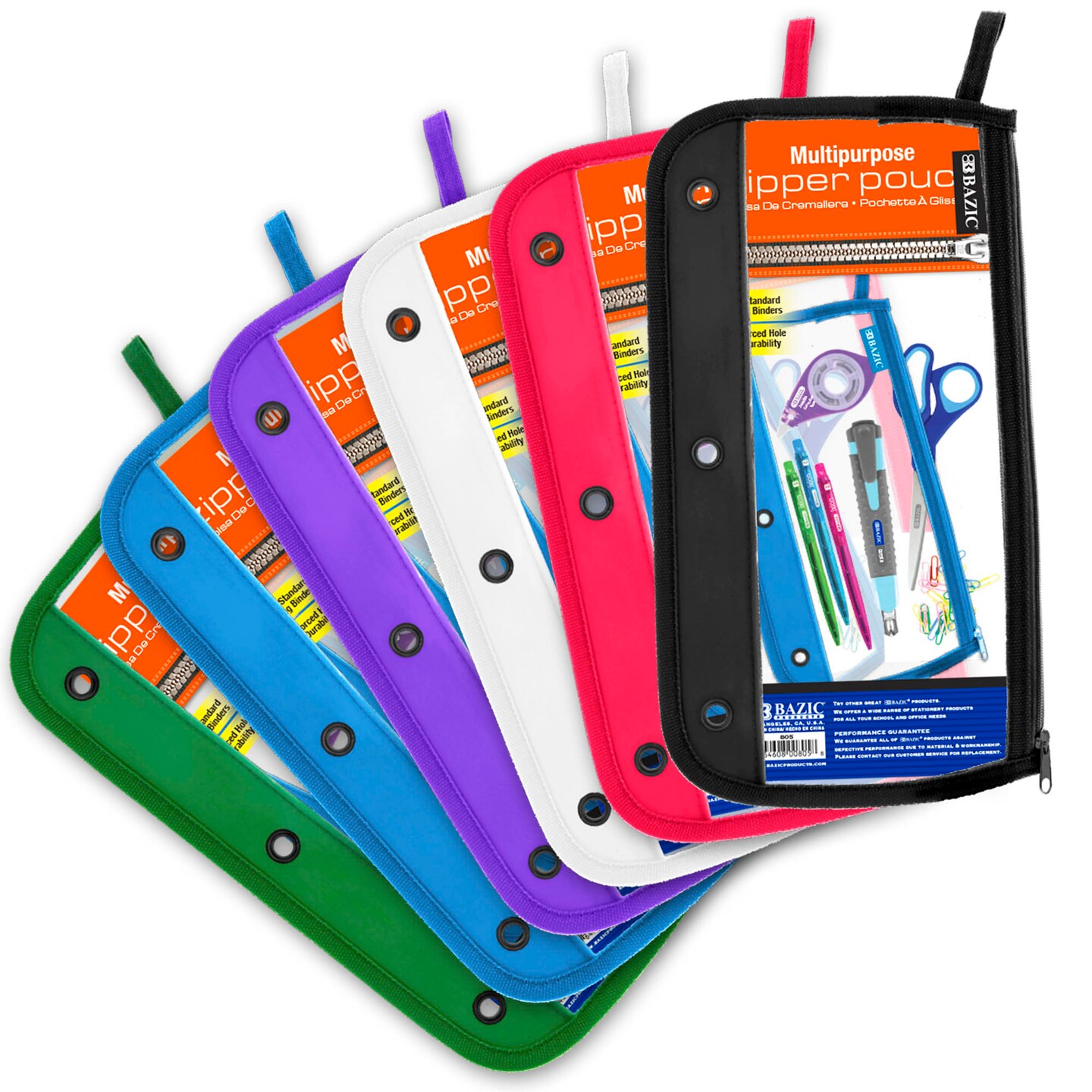 BAZIC Pencil Pouch 3-Ring Clear 11.5" x 6.5"