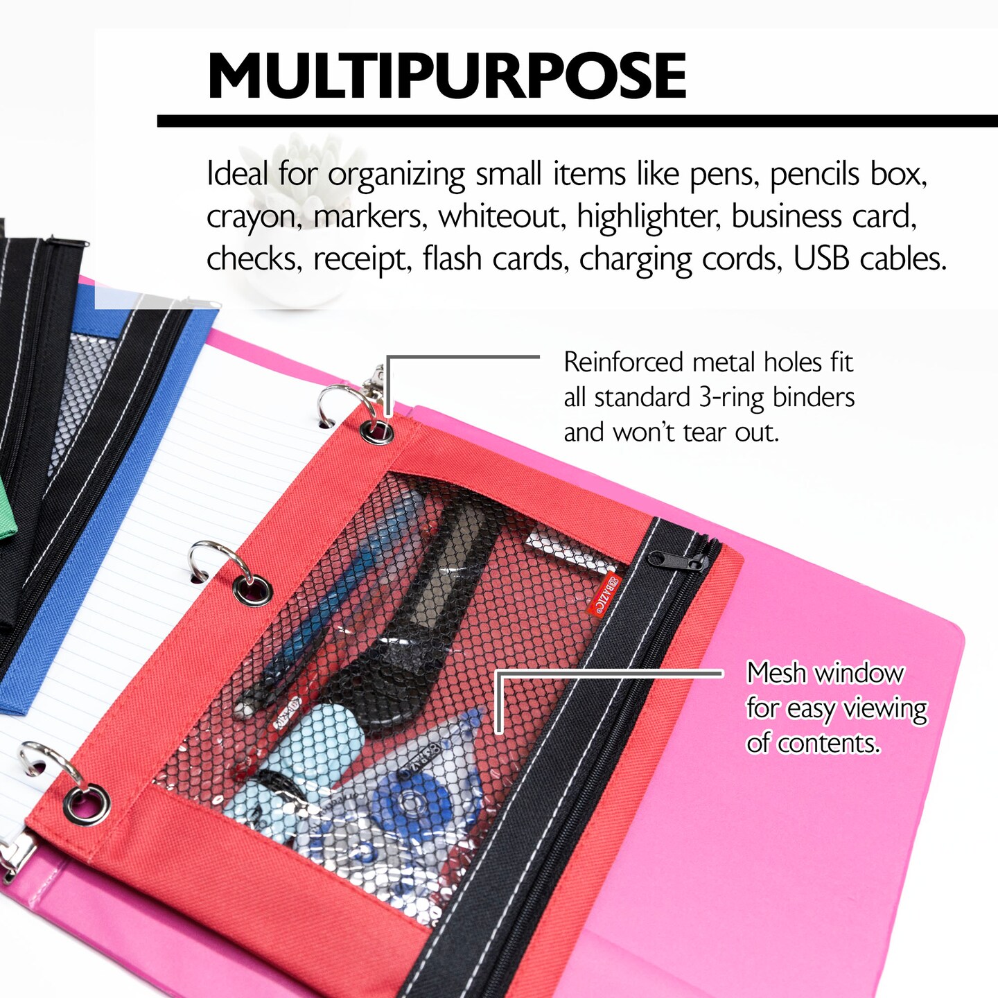 BAZIC Pencil Pouch 3-Ring w/ Mesh Window