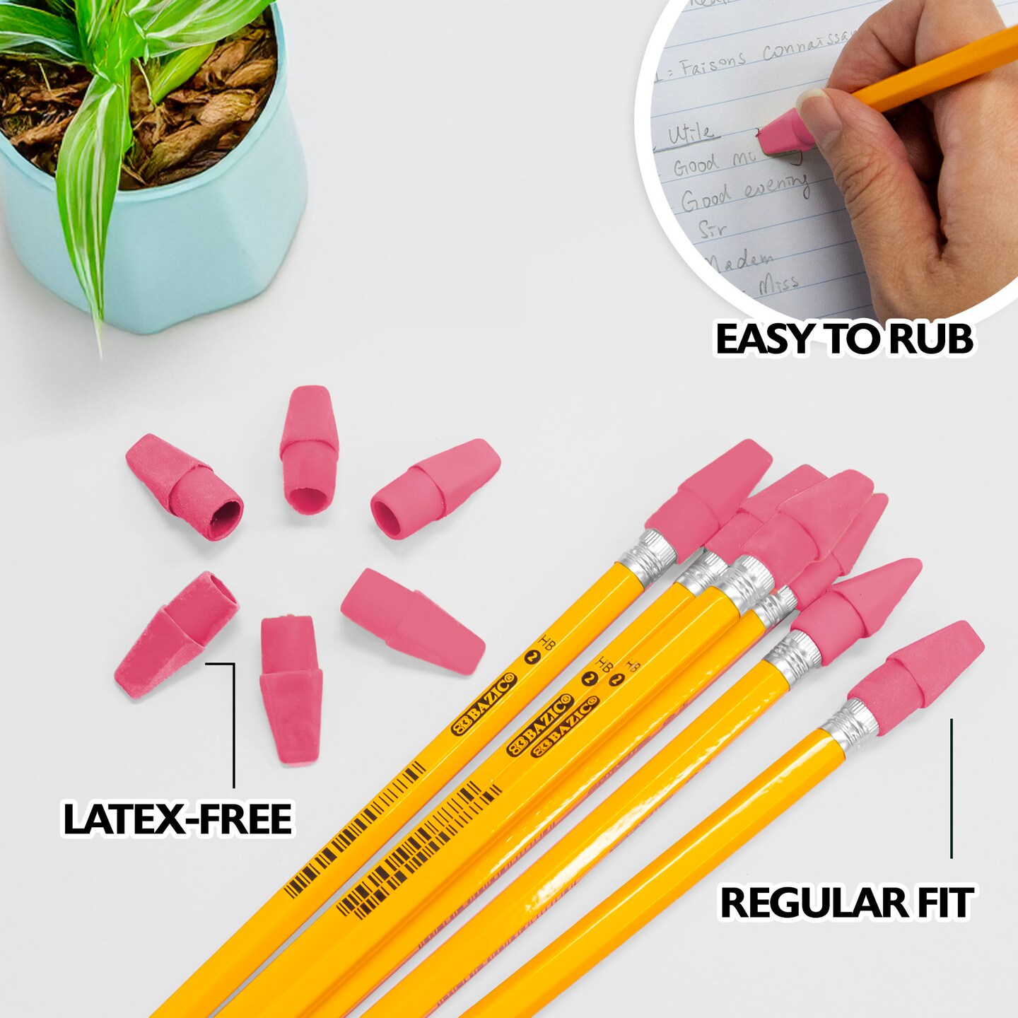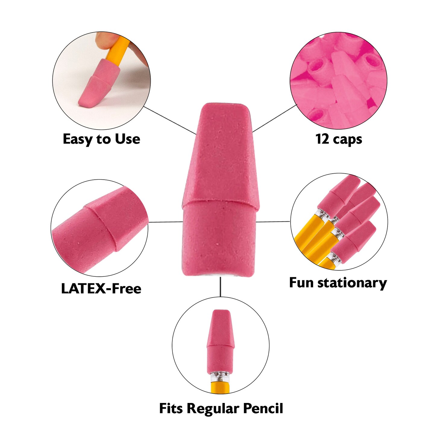 BAZIC Pink Eraser Cap (12/Pack)