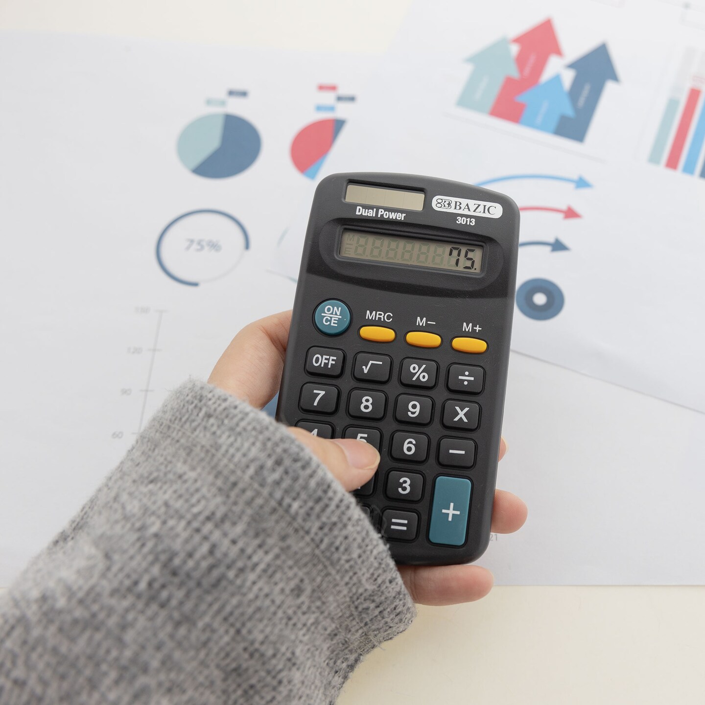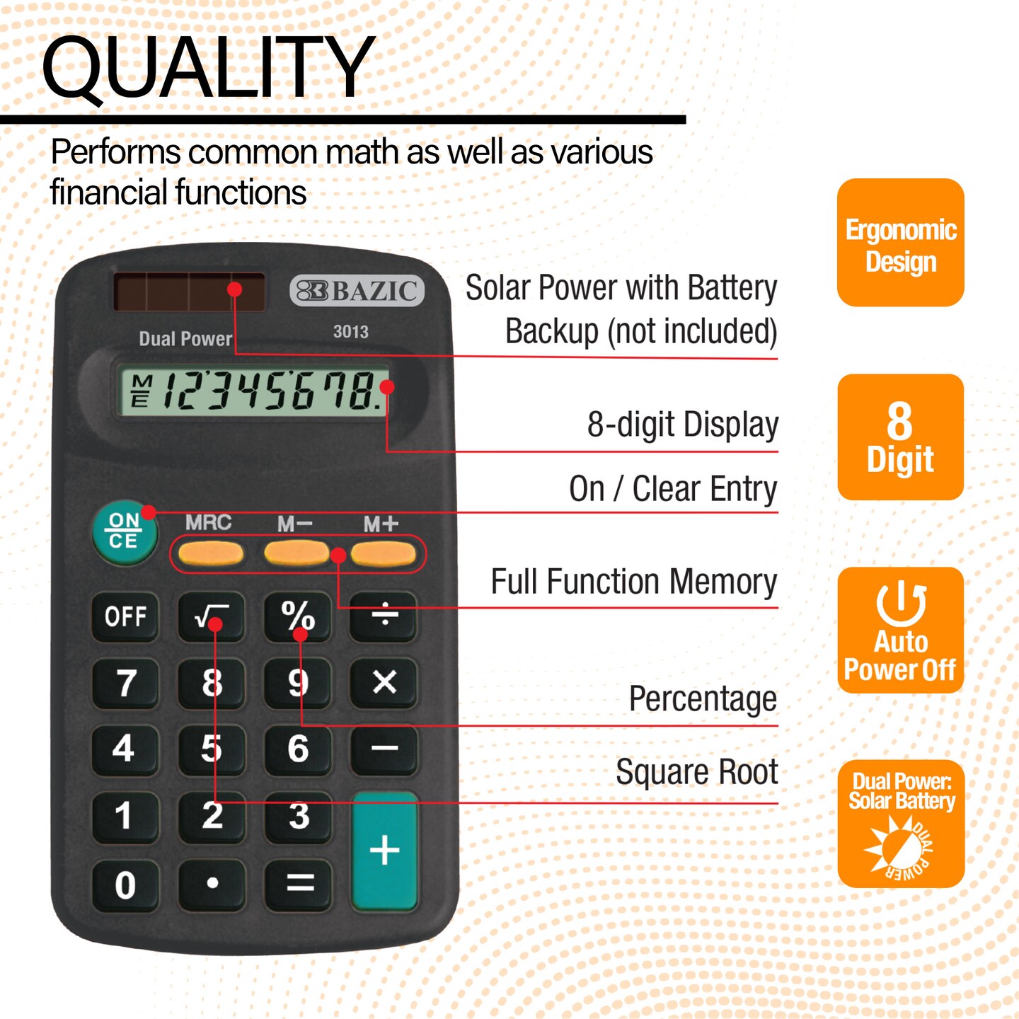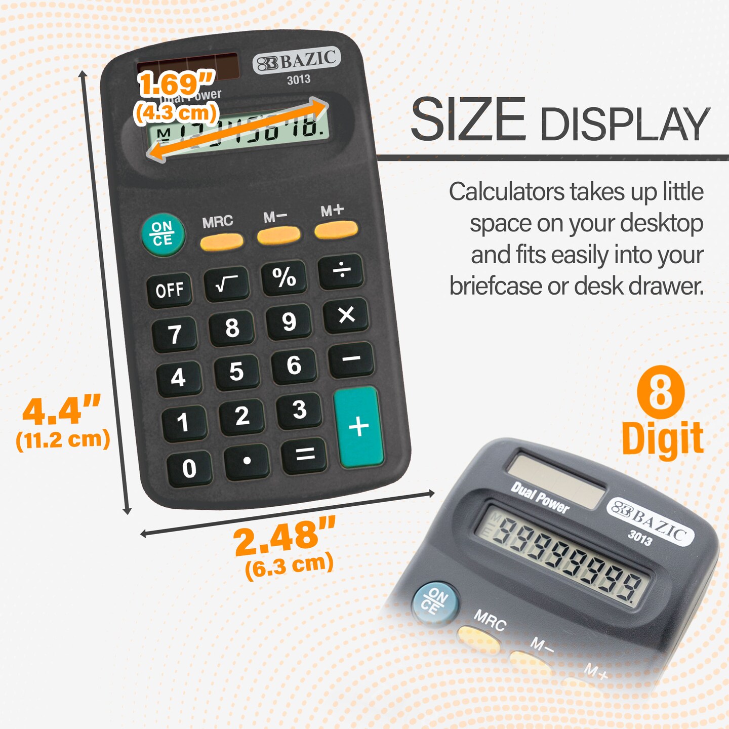 BAZIC Pocket Size Black Calculator 8-Digit Dual Power