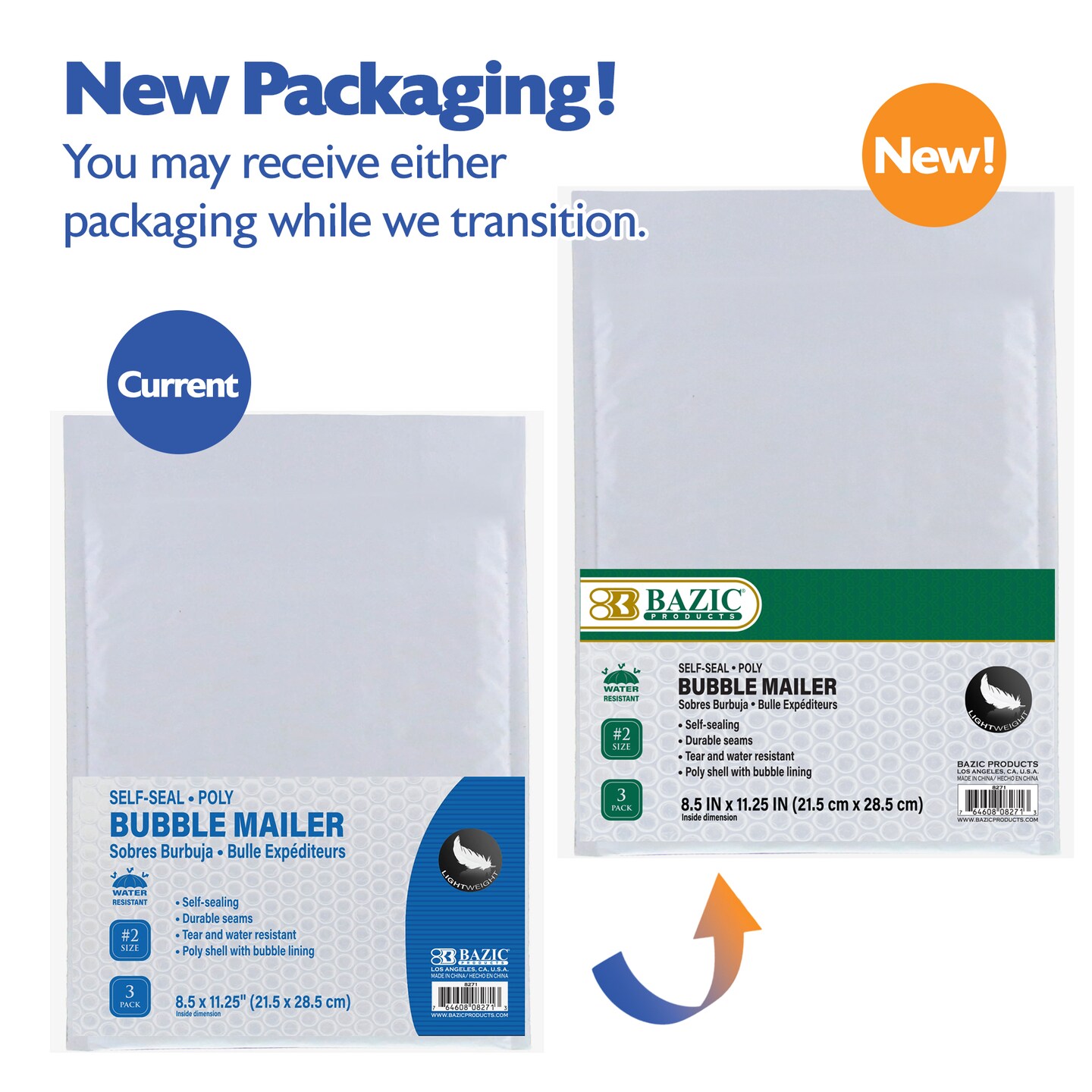 BAZIC Poly Bubble Mailer (#2) 8.5" x 11.25" (3/Pack)